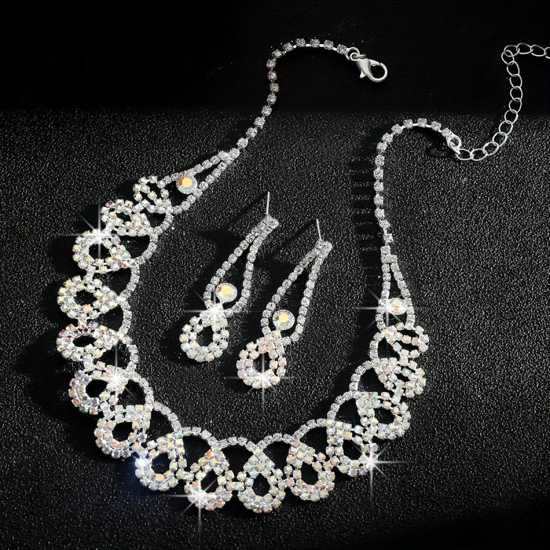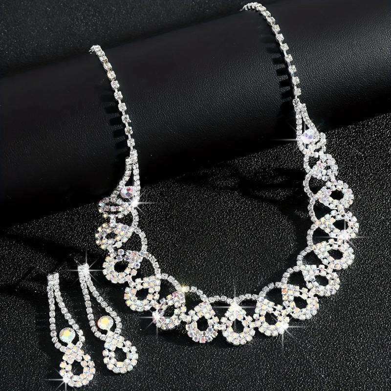 Make a stunning statement on your wedding day with this exquisite AB petal necklace and earring set. The brilliant design and shimmering petals will add a touch of elegance to your bridal look.