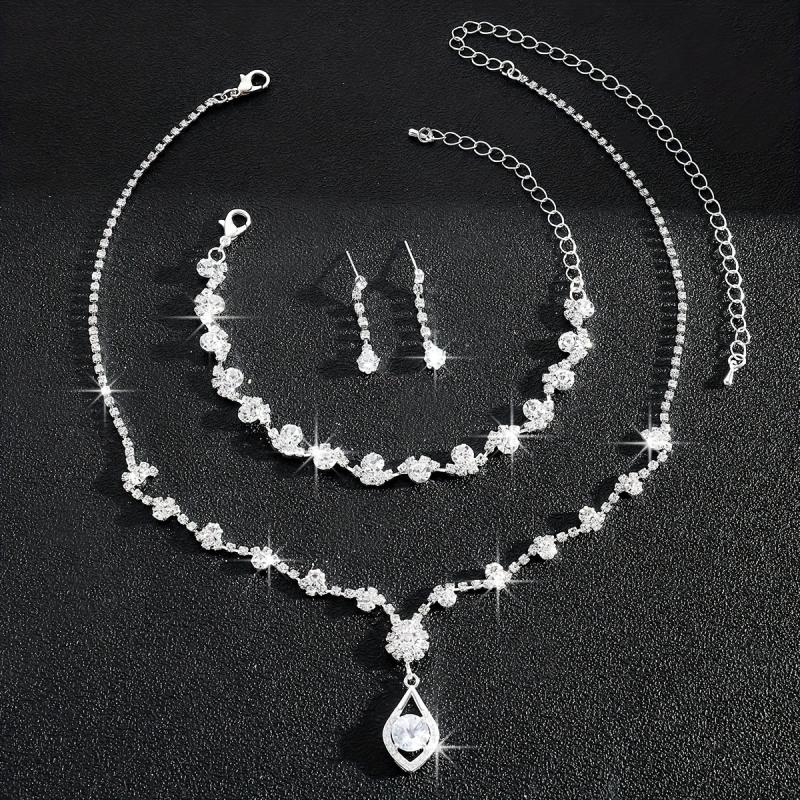 Complete your bridal look with this stunning set of water drop jewelry. The perfect accessories to add a touch of elegance to your wedding ensemble.