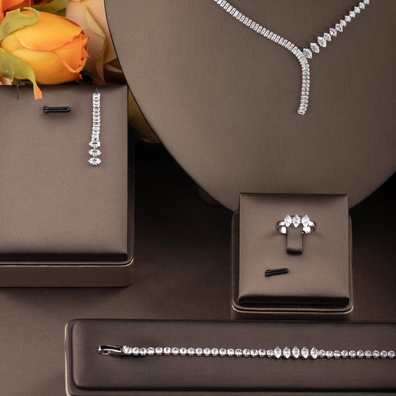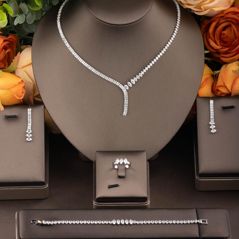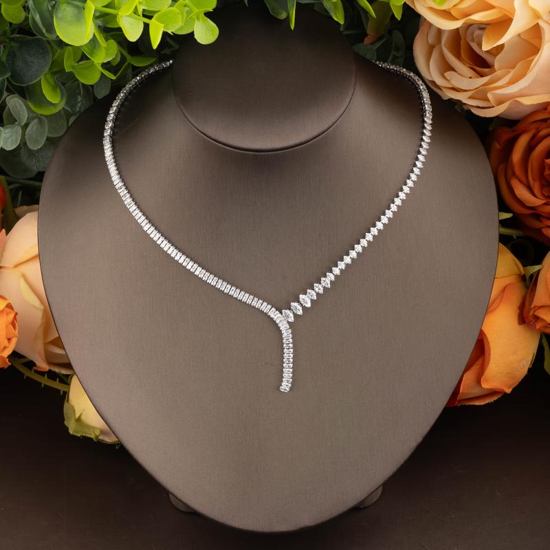 This stunning jewelry set features a minimalist cubic zirconia inlaid teardrop pendant, perfect for adding a touch of elegance to your evening attire.
