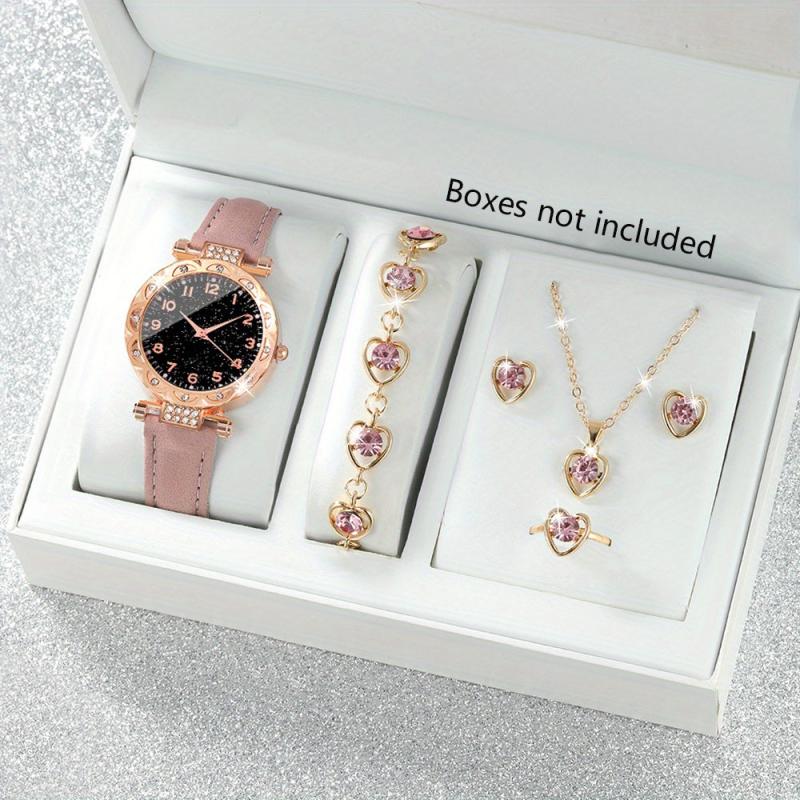 This set includes a stylish women's quartz watch along with 5 pieces of matching jewelry. Perfect for adding a touch of elegance to any outfit.