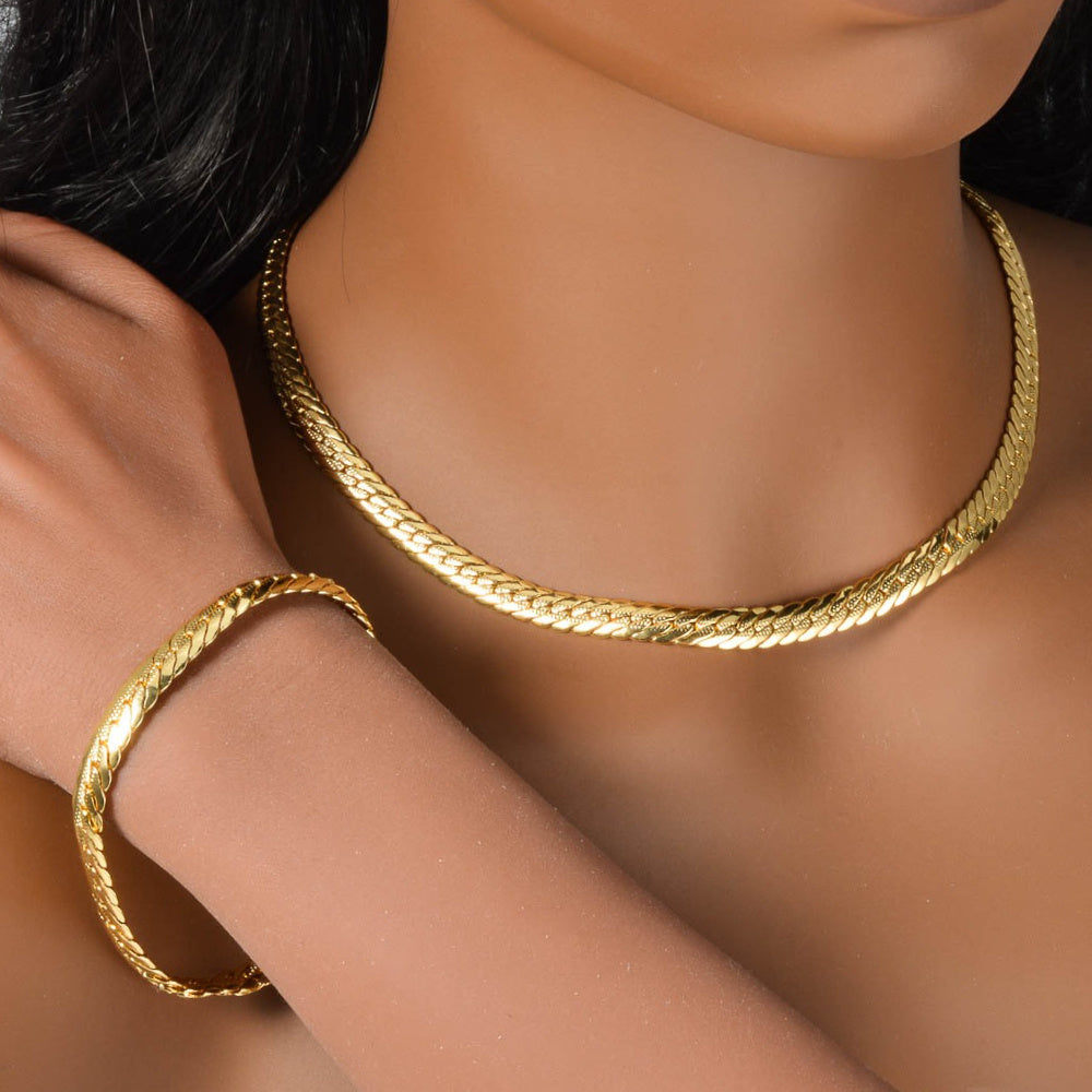 This classic embossed necklace and bracelet set is perfect for daily wear, parties, or as a gift. Made of high-quality copper, it has a hip hop punk vibe that adds edge to any outfit.