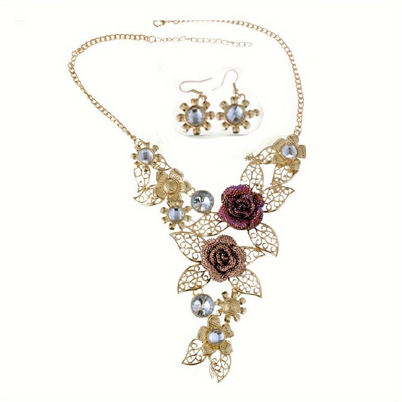 Elevate your style with this minimalist yet elegant European Court floral jewelry set. Crafted with a delicate design, this set includes a pair of earrings and a necklace.