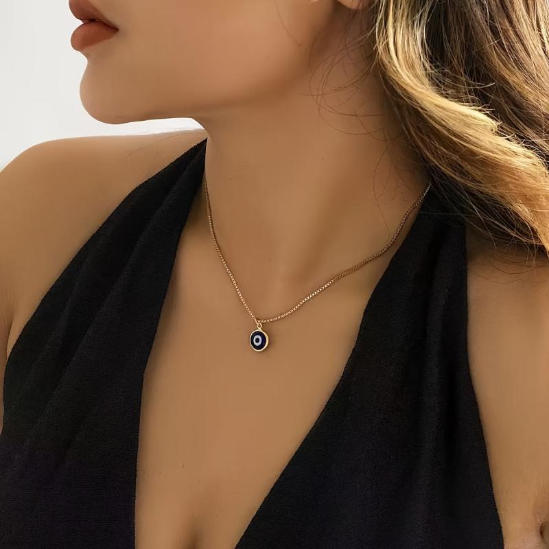 This pendant necklace features an evil eye acrylic charm on a delicate chain, making it a perfect accessory for both everyday wear and special occasions. The casual yet stylish design of the necklace adds a touch of charm to any outfit.