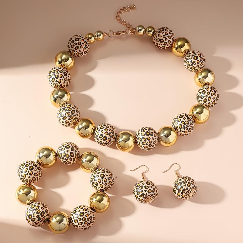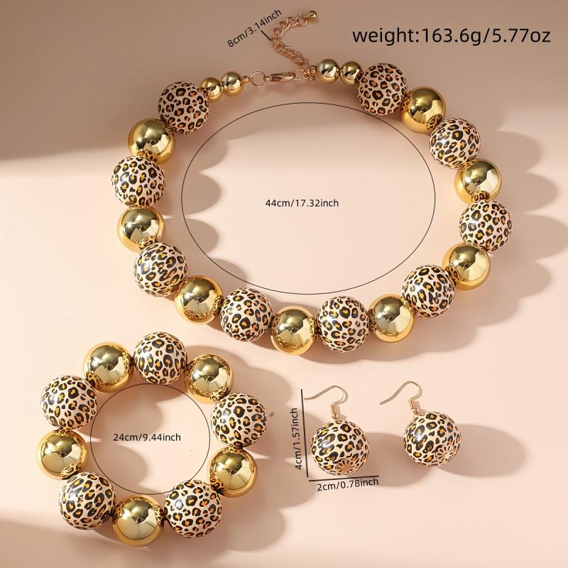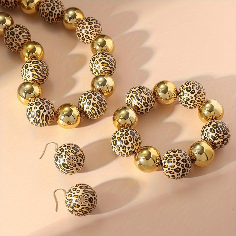 Complete your outfit with this stunning 4-piece leopard beaded jewelry set. Perfect for banquets and parties.