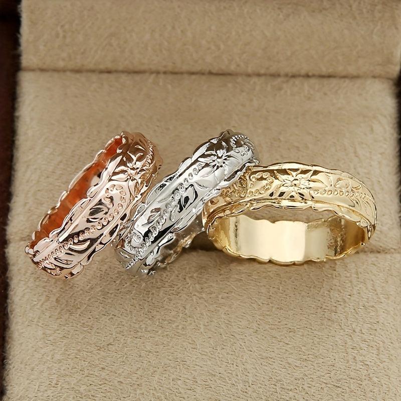 This stylish carved rose ring is perfect for everyday wear or special occasions. It makes a beautiful wedding ring for women.
