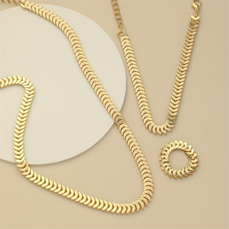 Elevate your style with this chic set featuring a wheat chain necklace, bracelet, and ring. Perfect for a versatile look with a metal wind design.