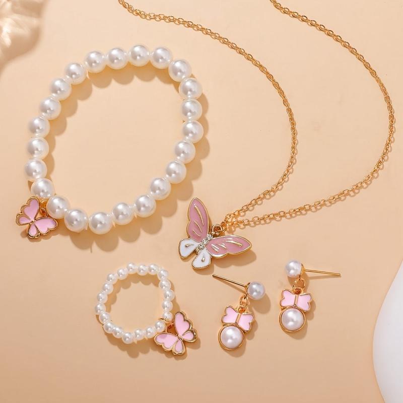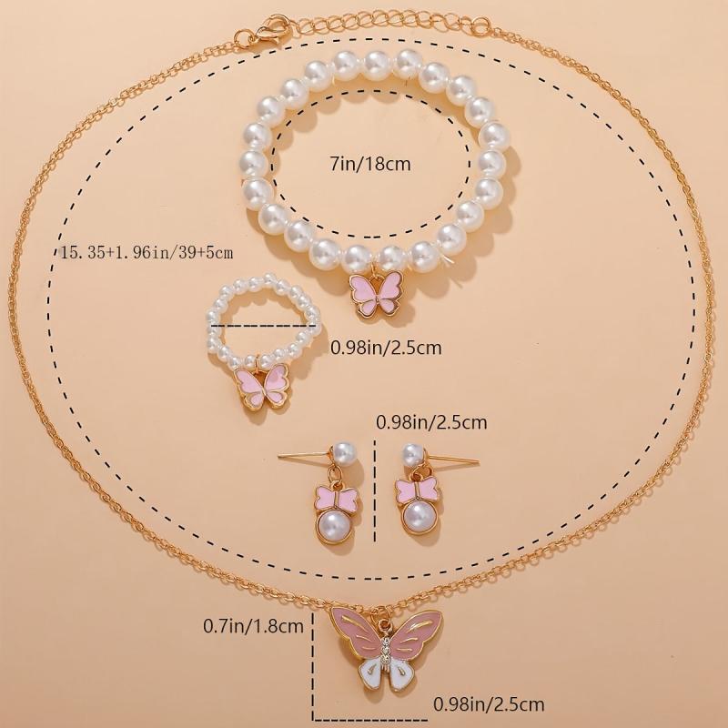 This lovely chain necklace set features a pink butterfly charm and pearl accent. Made from durable alloy material with no plating, it's perfect for girls who love delicate jewelry.