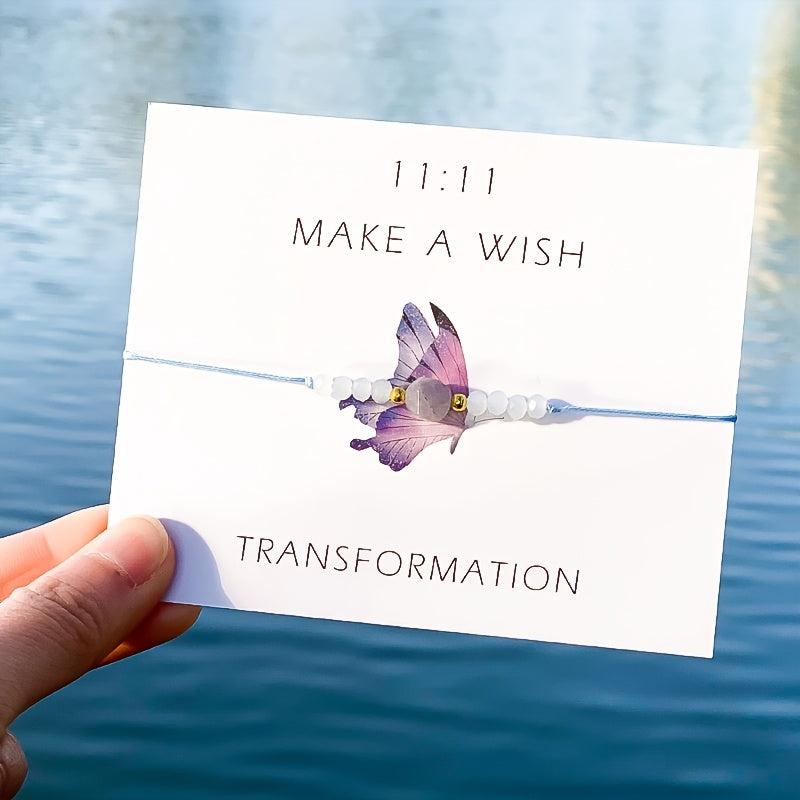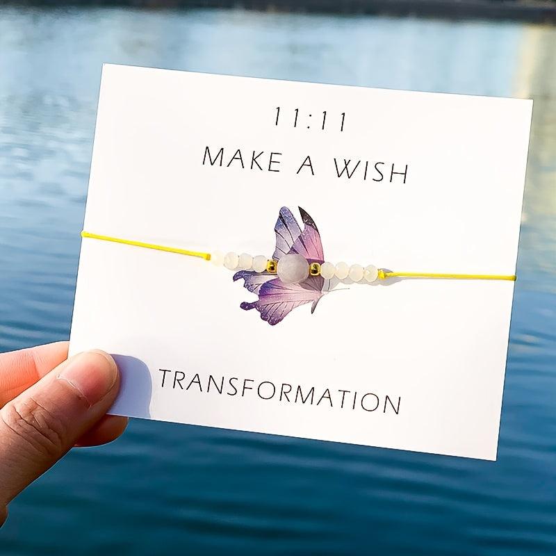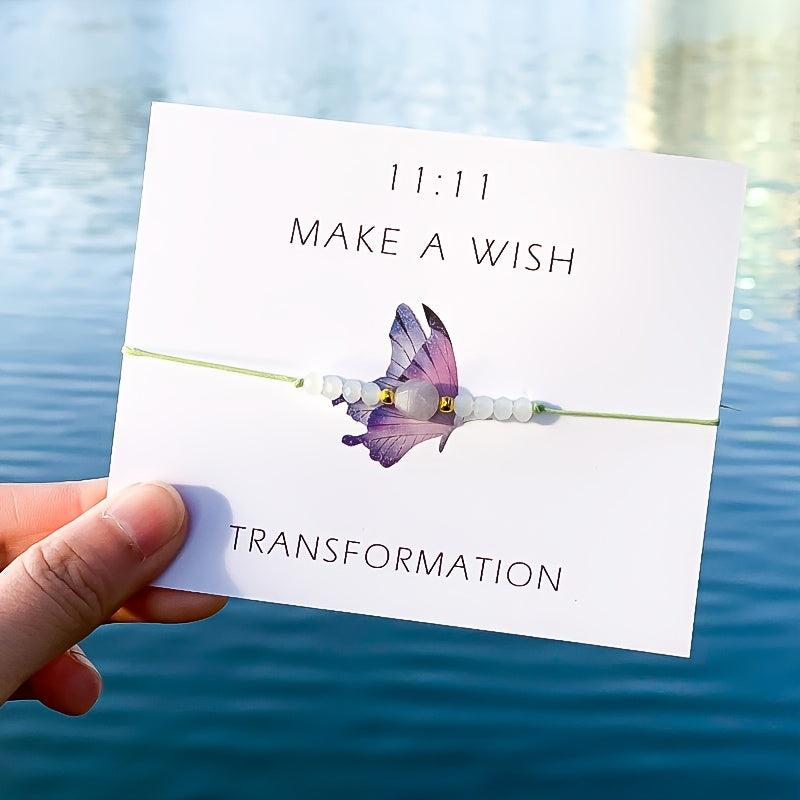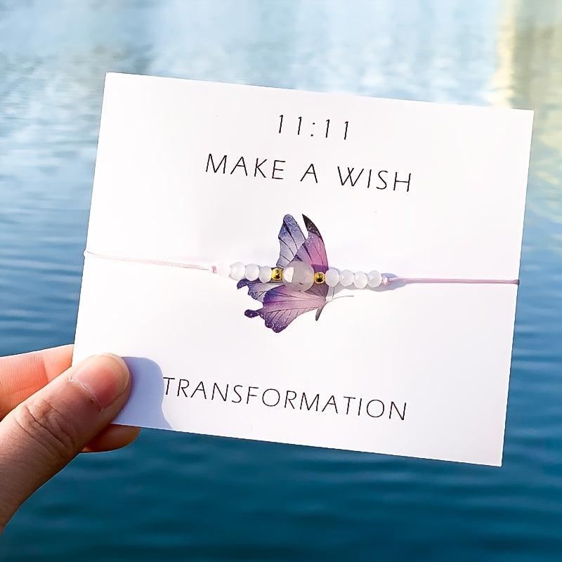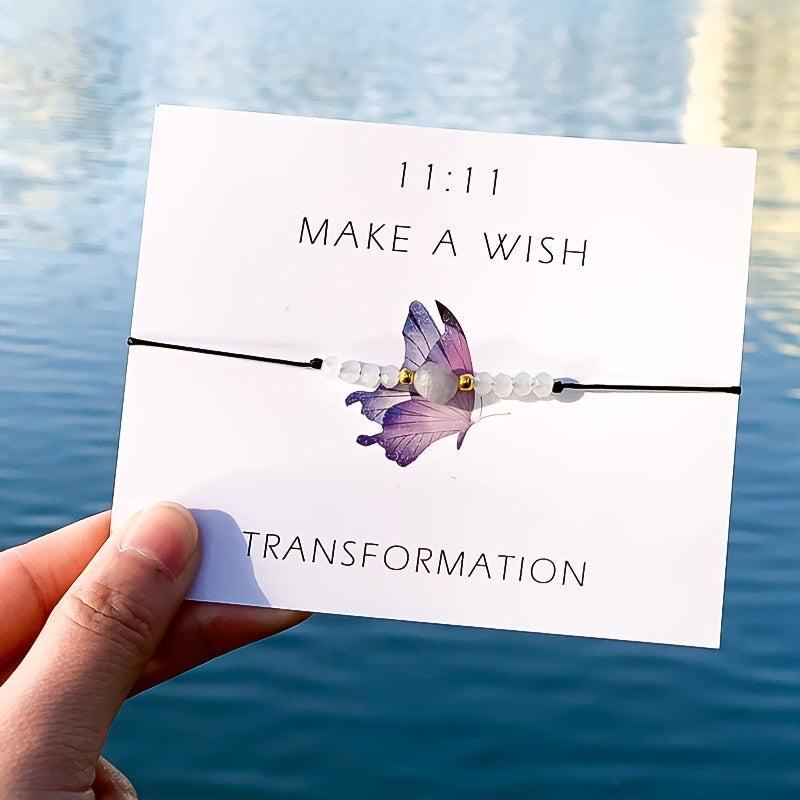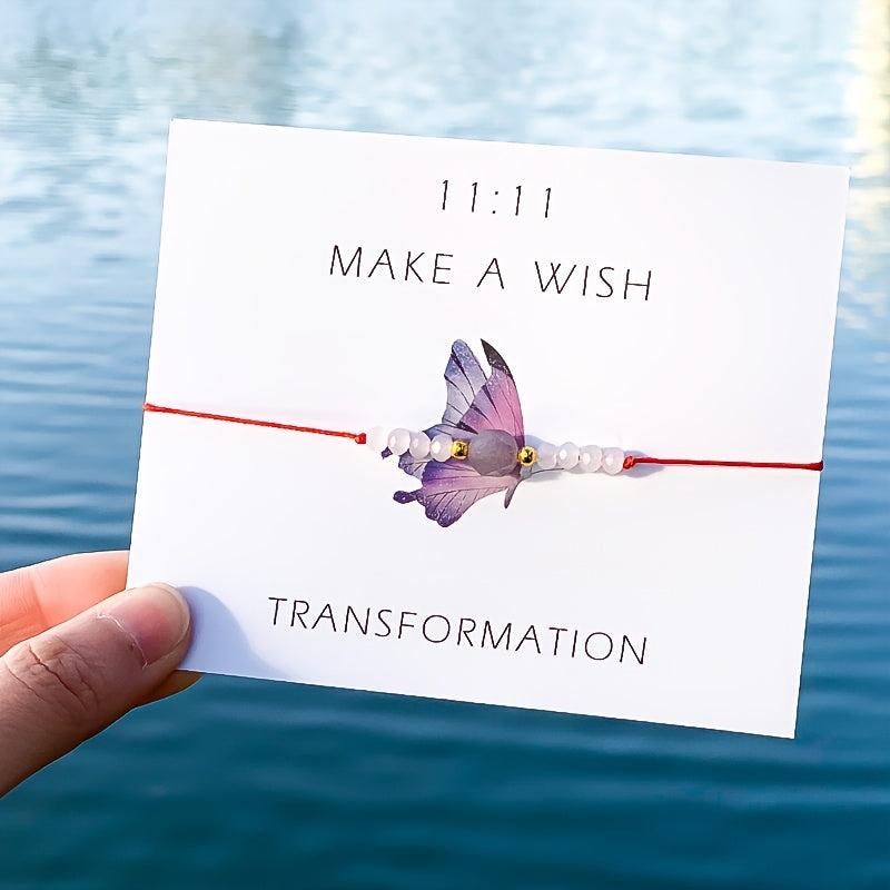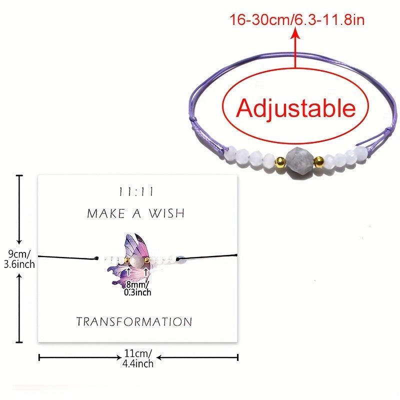 This wish bracelet features a purple floral charm combined with glass beads and golden accents. It is perfect for daily wear and makes a great friendship gift for both women and men.