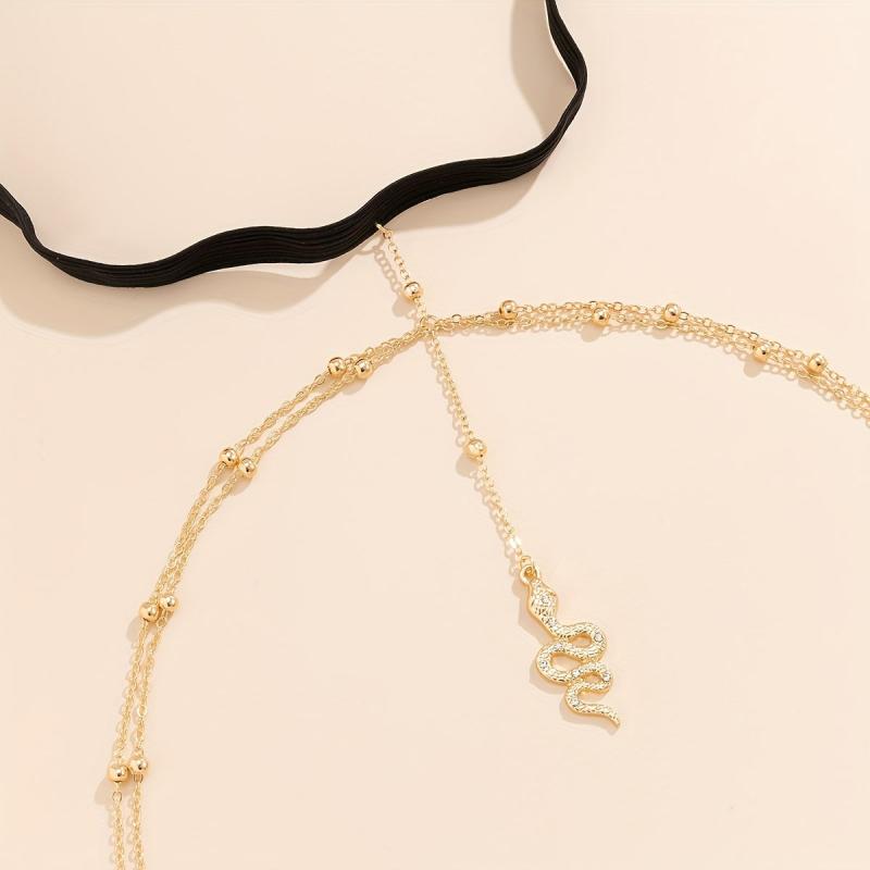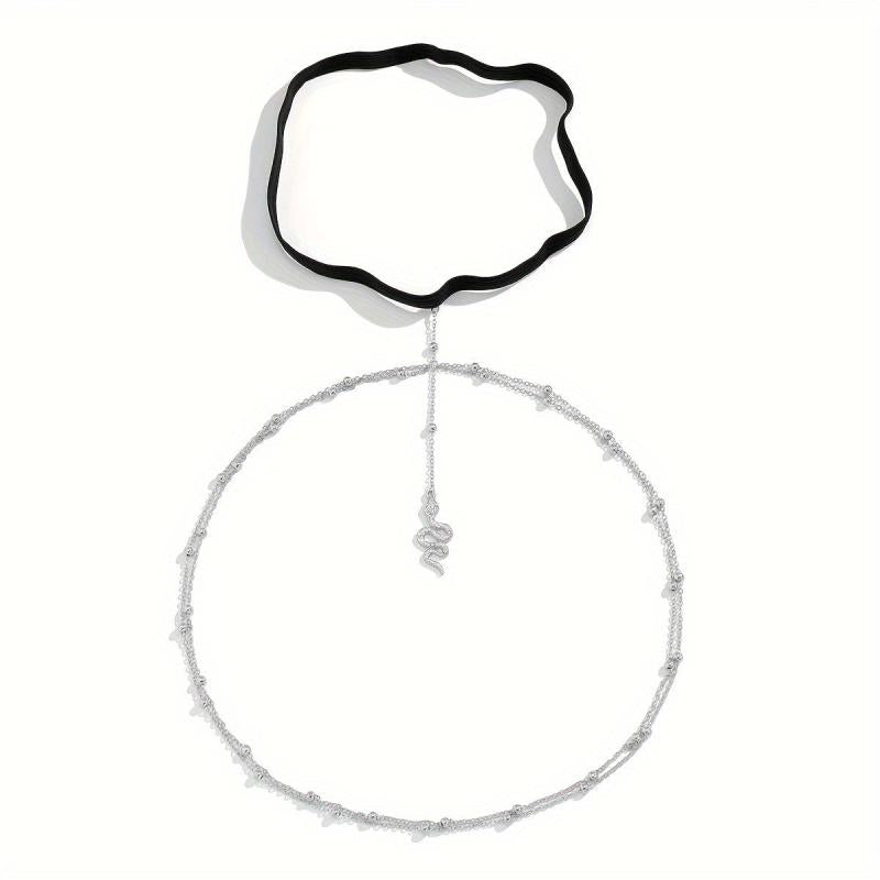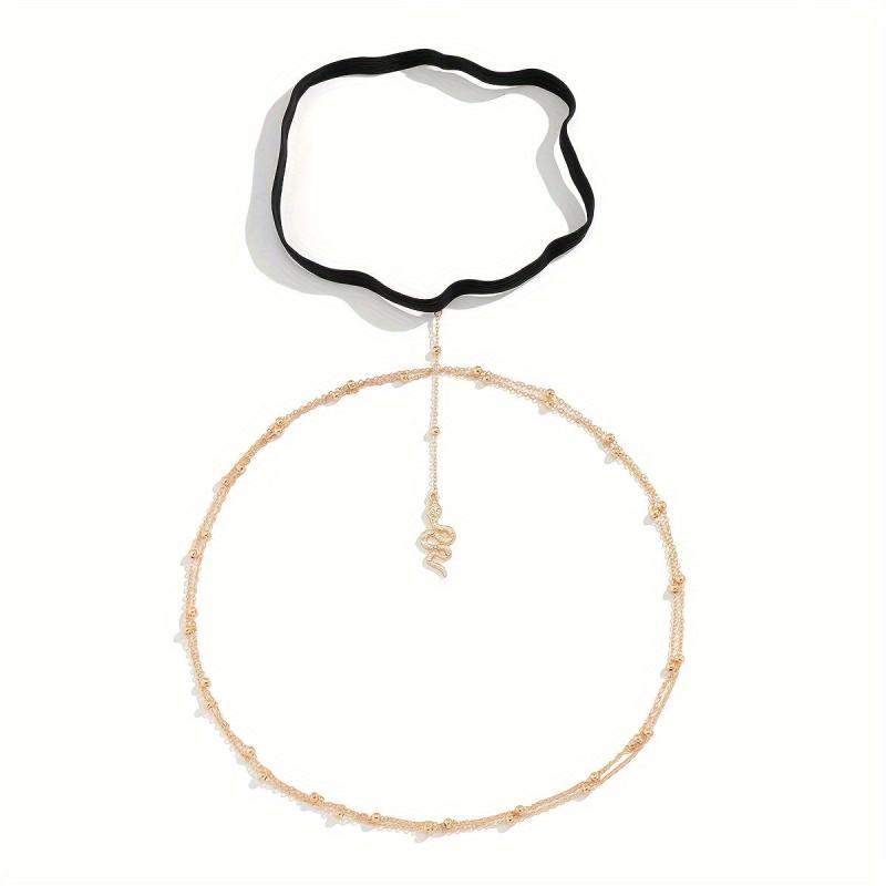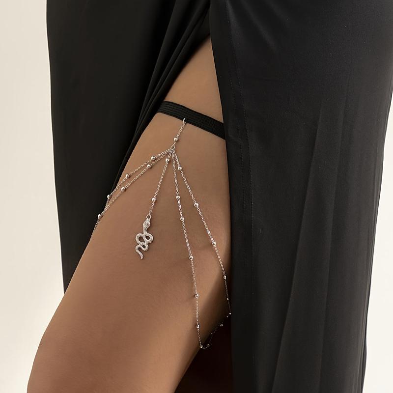 Elevate your style with this sexy snake pendant body chain featuring multiple layers of tassels and copper beads. The elastic leg chain adds a unique touch.