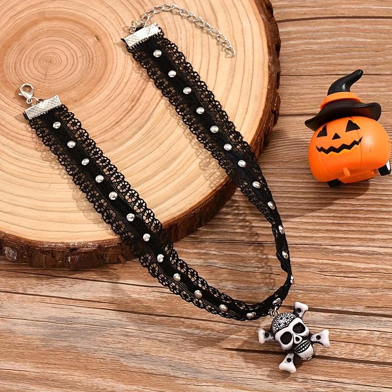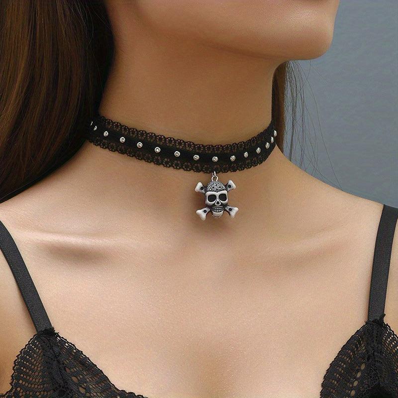 Gothic Dark Skull Choker Necklace Punk Style Halloween Party Neck Ornament