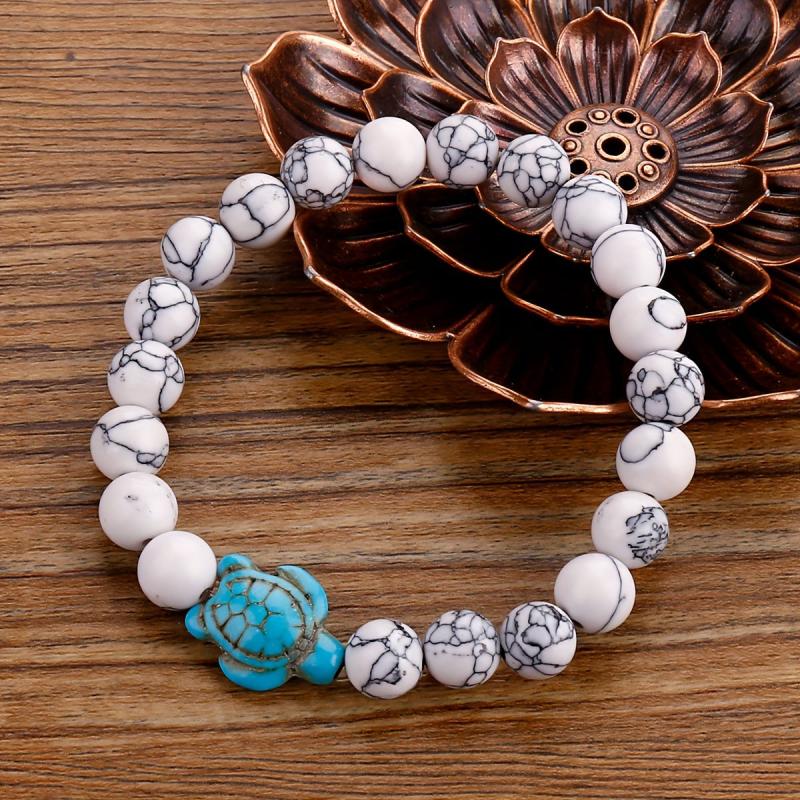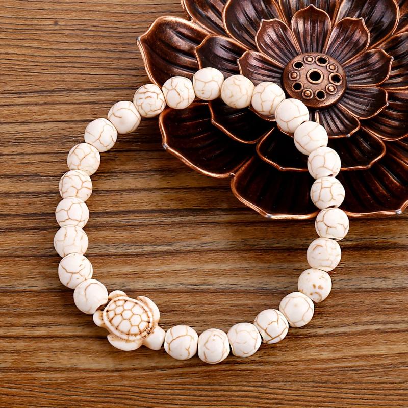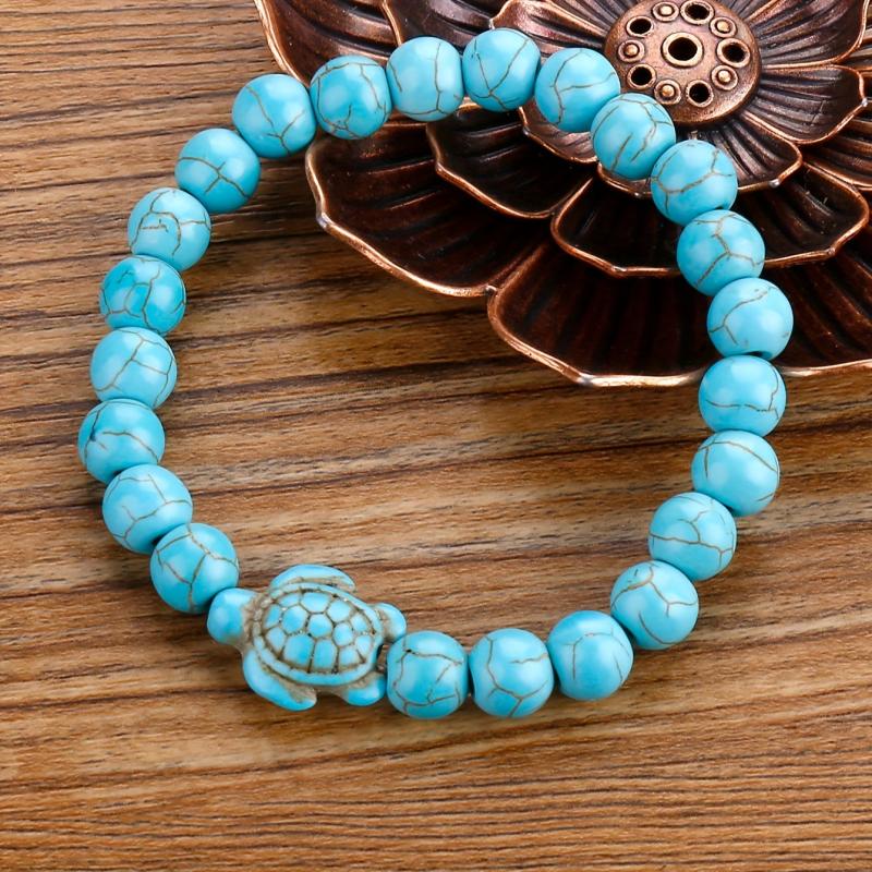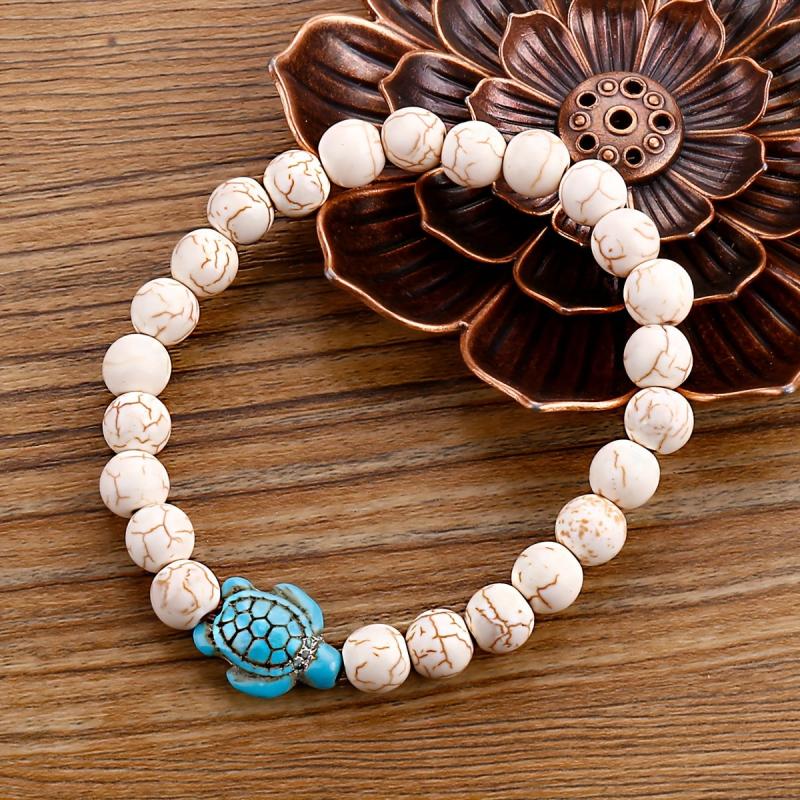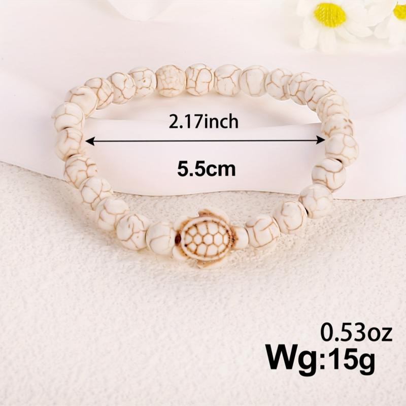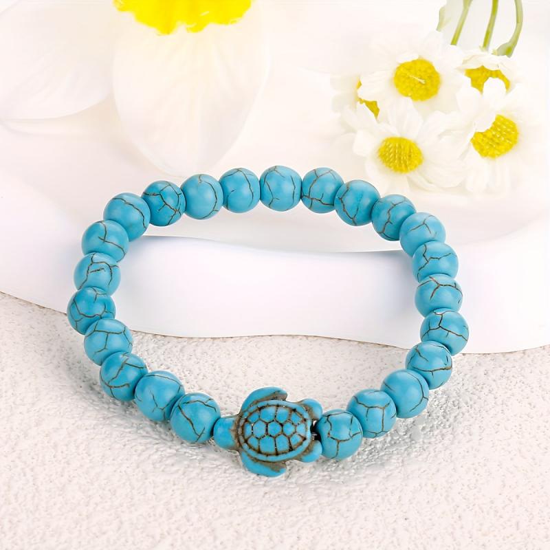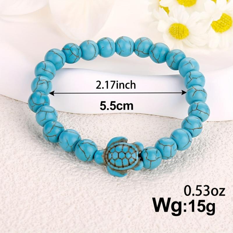 These stylish turtle bracelets feature green turquoise volcanic stone and turquoise beads, suitable for both men and women. Perfect for adding a touch of nature-inspired elegance to your outfit.