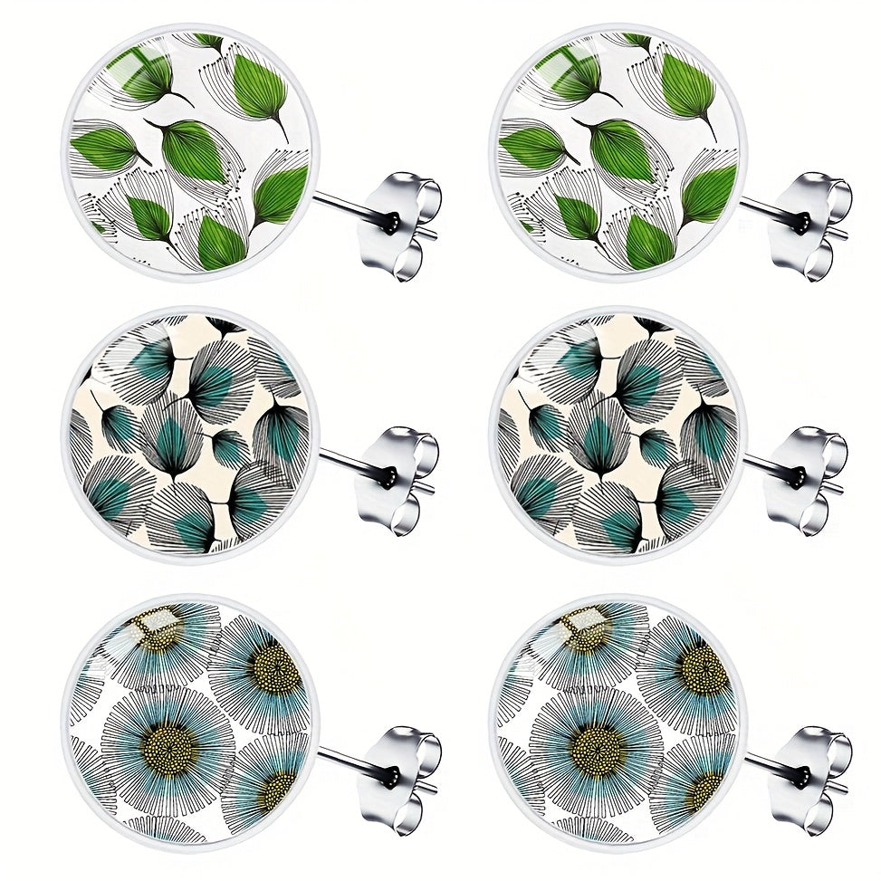 This set includes 3 pairs of hand-painted leaves stainless steel earrings, suitable for both men and women for commuting, dating, and daily wear.