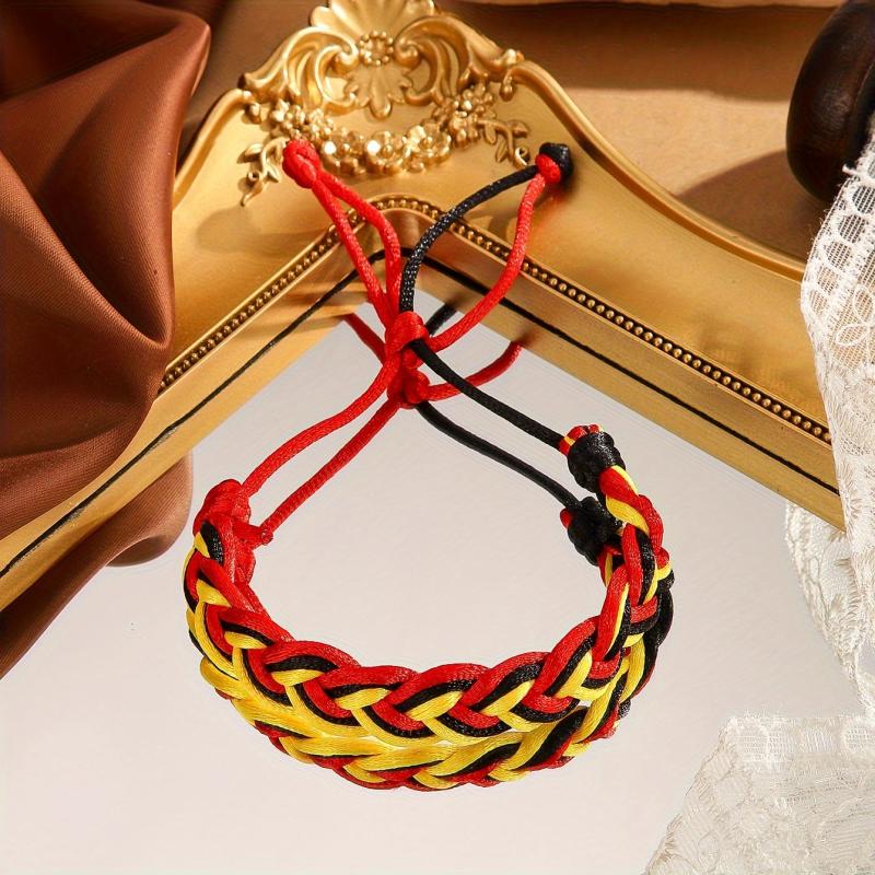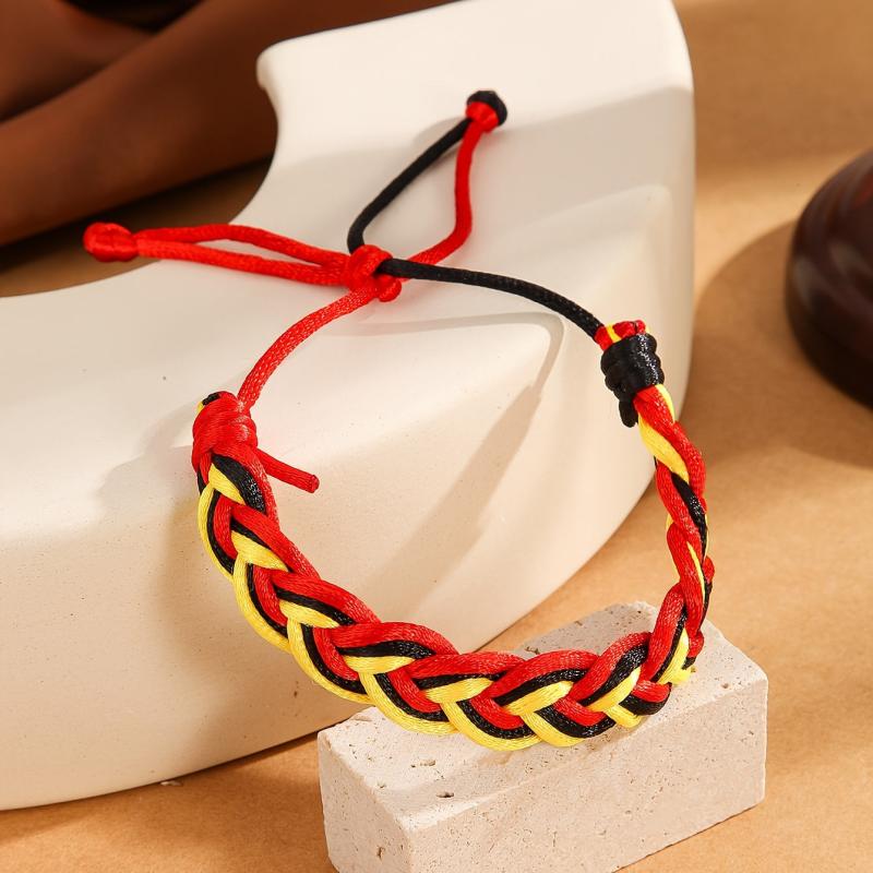 Stylish bracelet perfect for daily wear and vacation. Features hand woven design with stripes, suitable for both men and women.