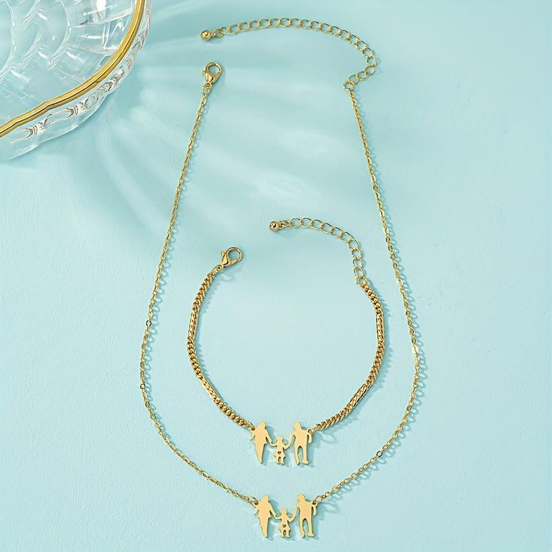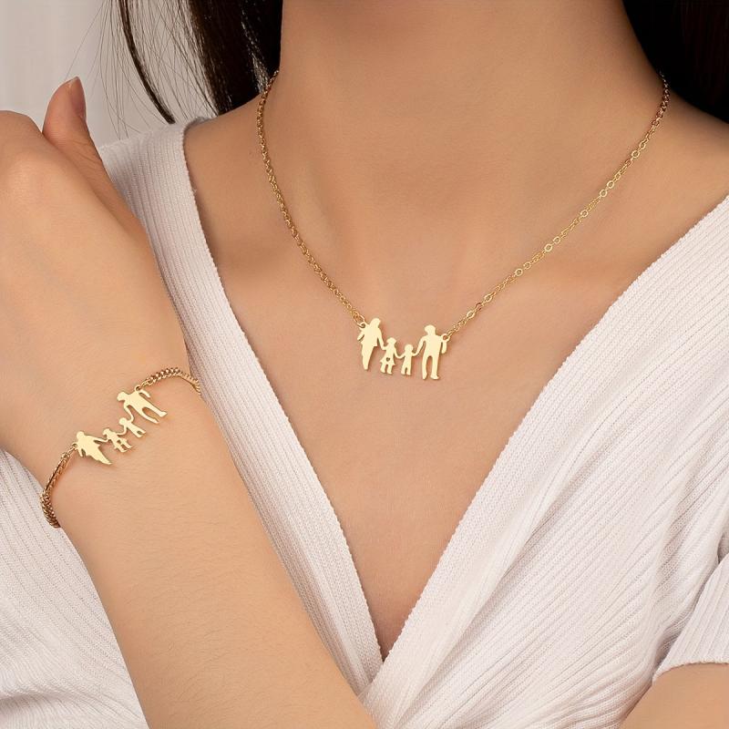 This 2-piece jewelry set includes a necklace and bracelet, designed for family members to match their daily outfits. Show your love and unity with this charming set. A thoughtful gift for your family.