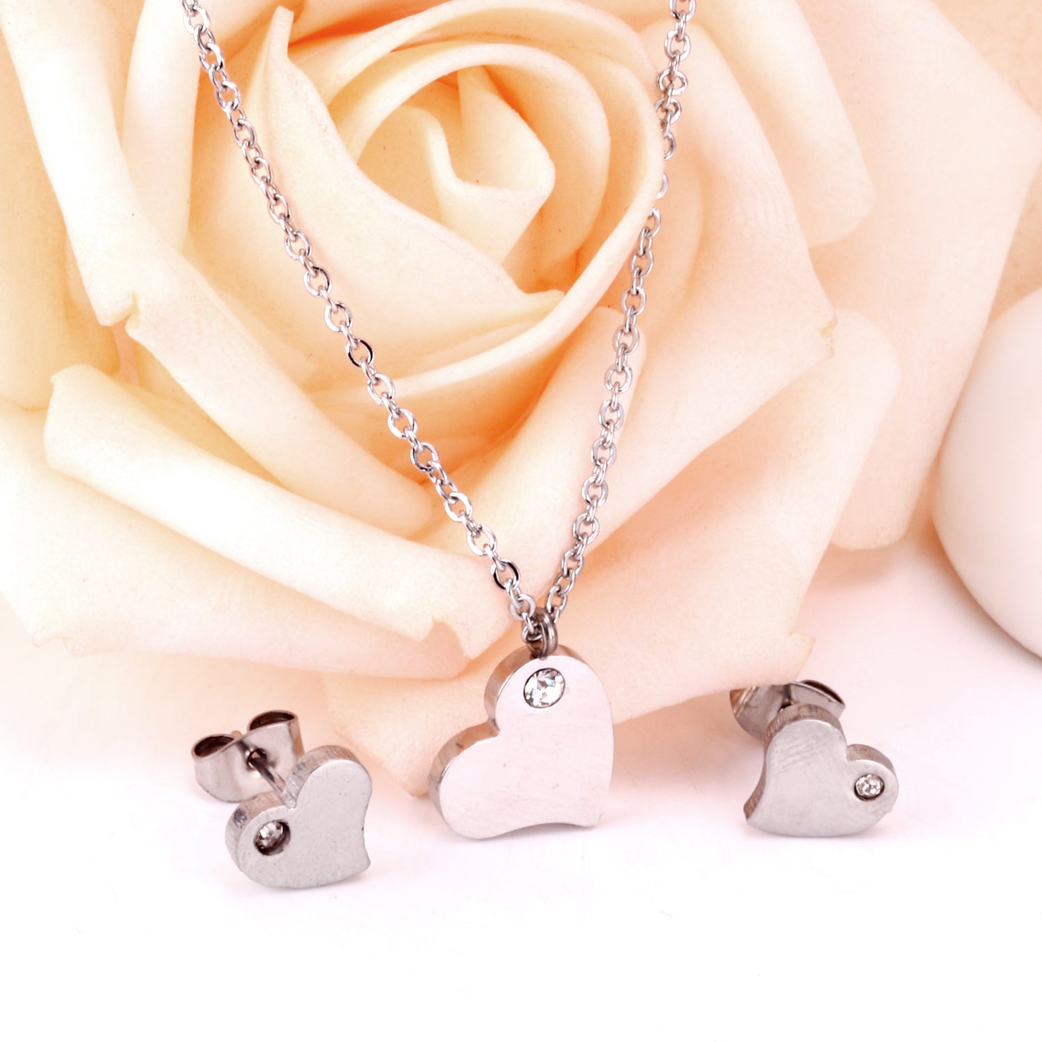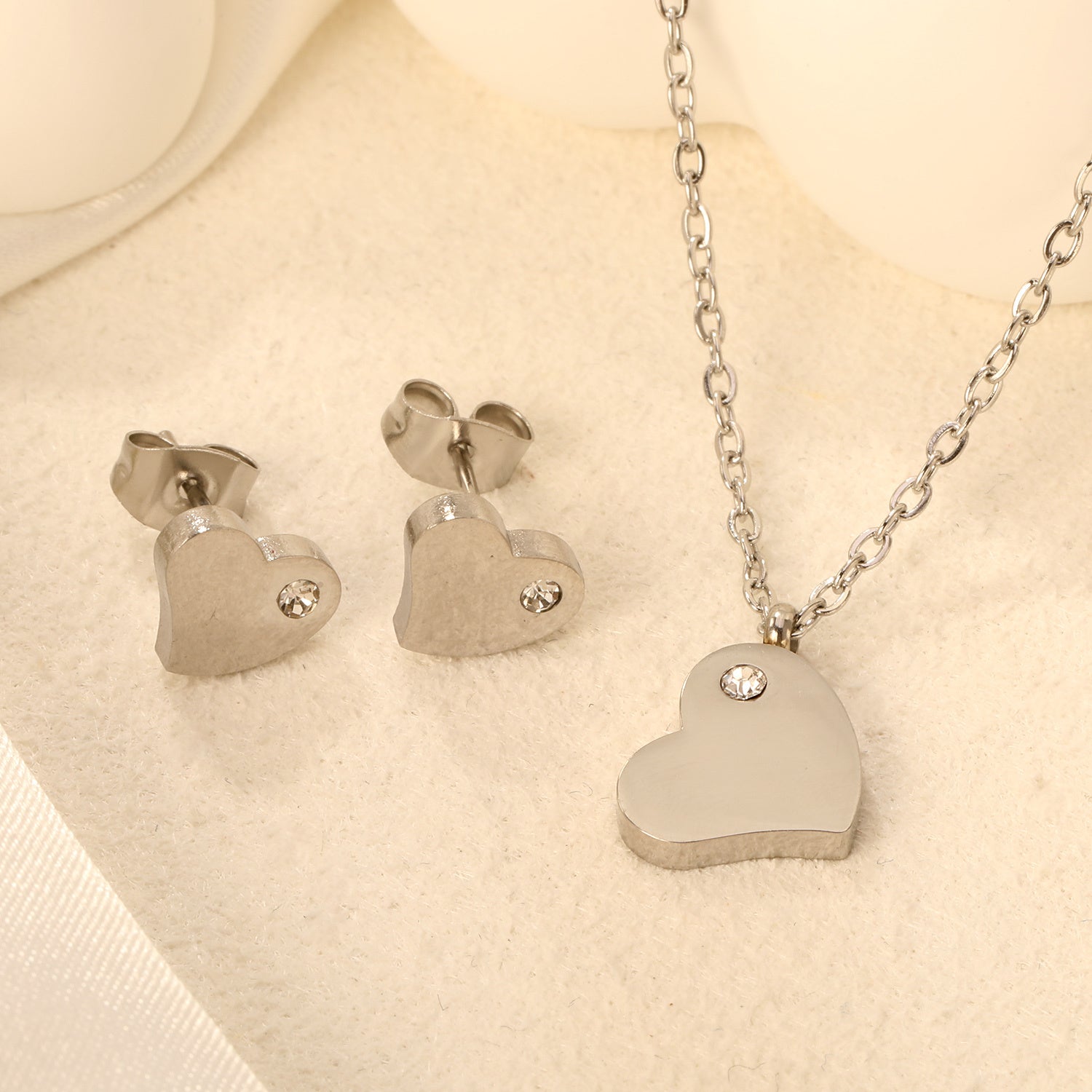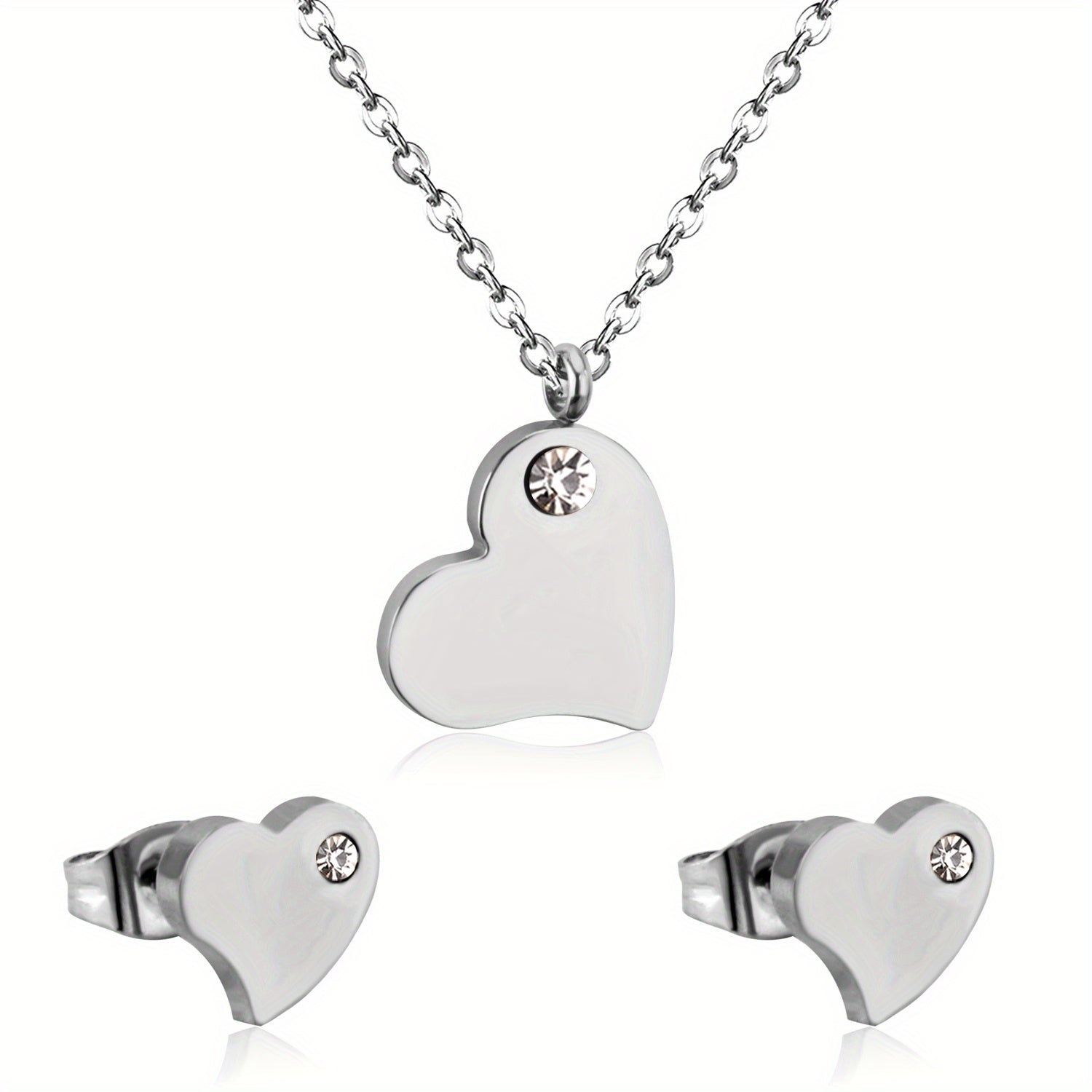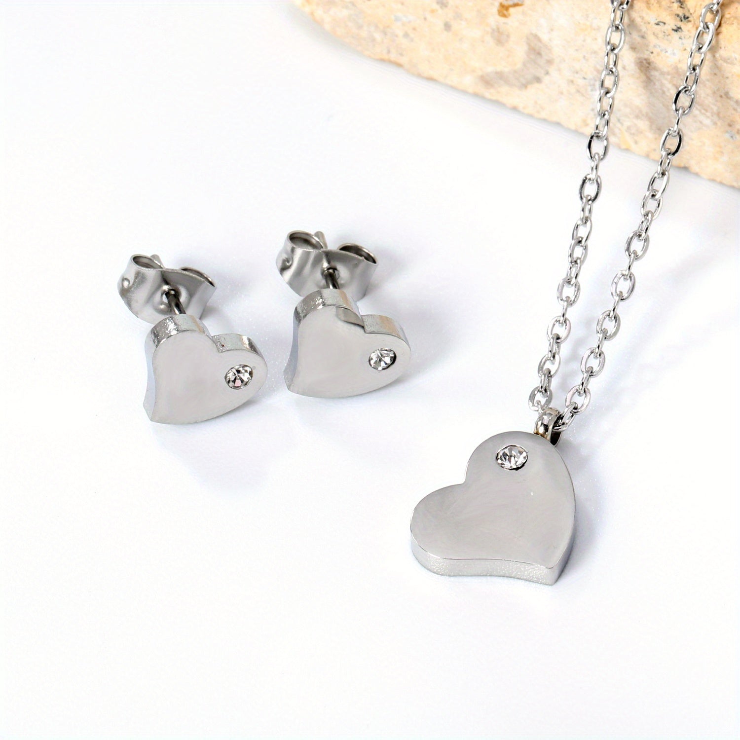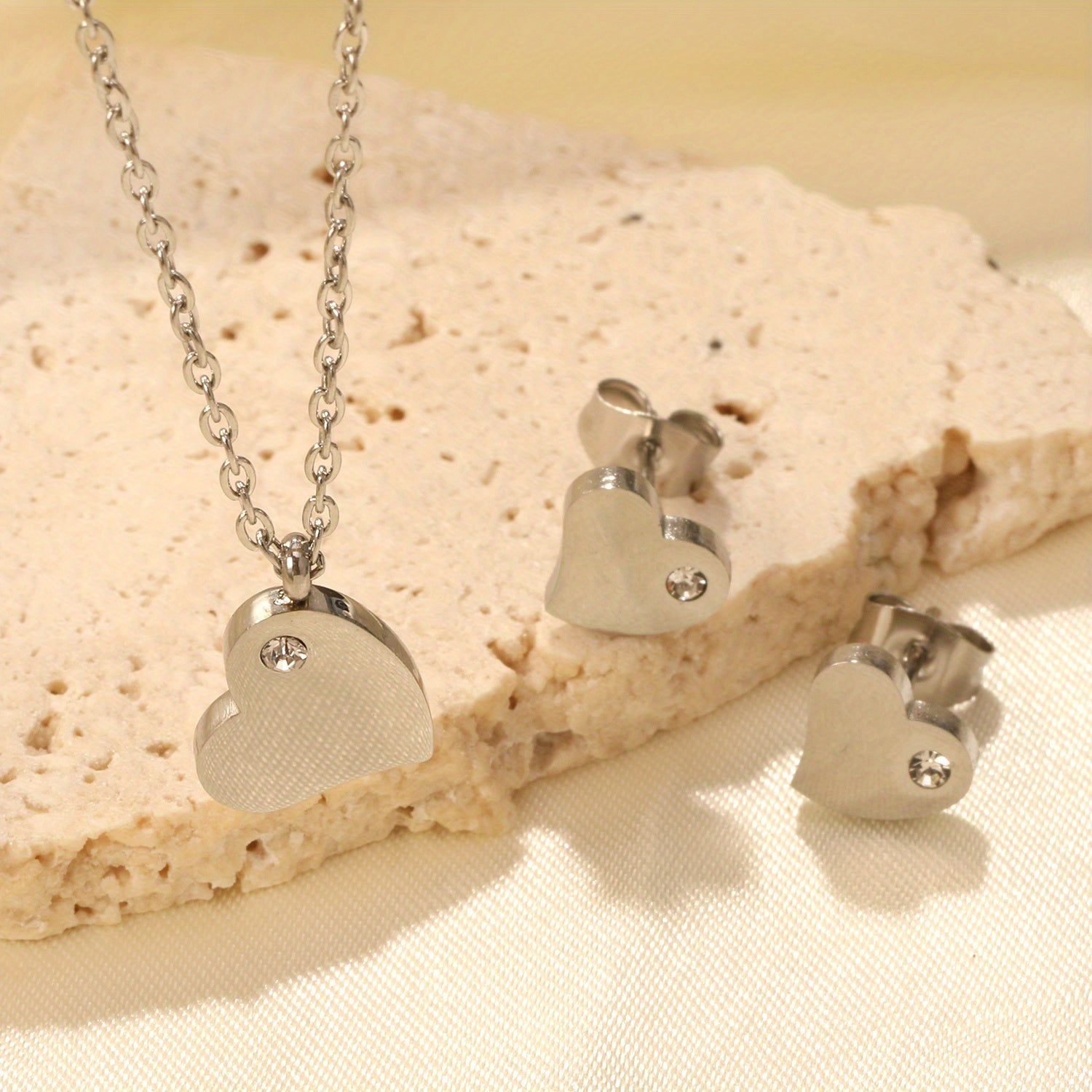 Elevate your look with this elegant jewelry set featuring a heart-shaped necklace and matching earrings. Crafted from durable stainless steel, with a French minimalist design, perfect for any occasion.