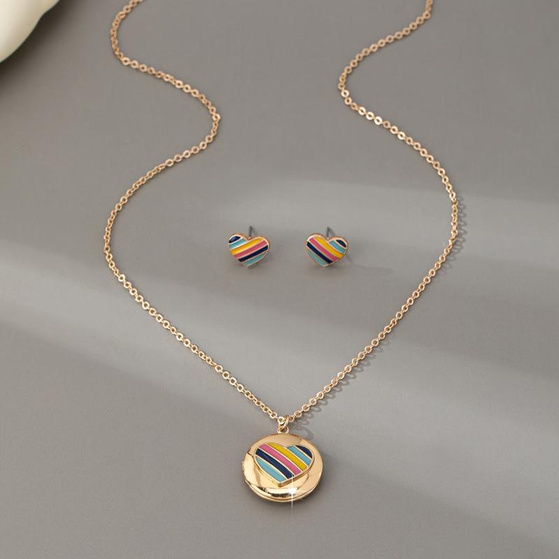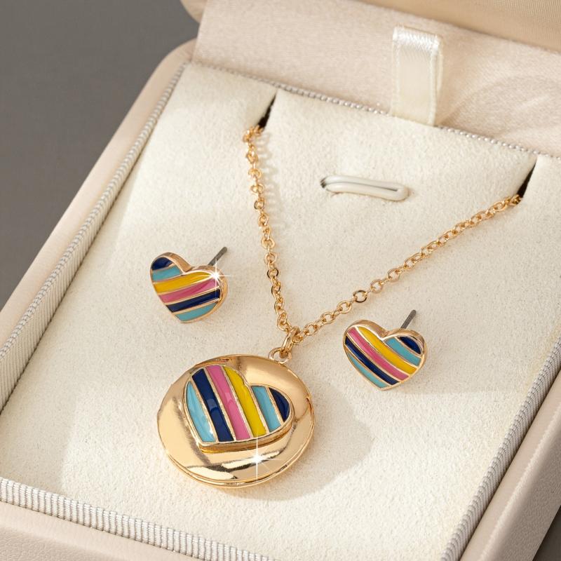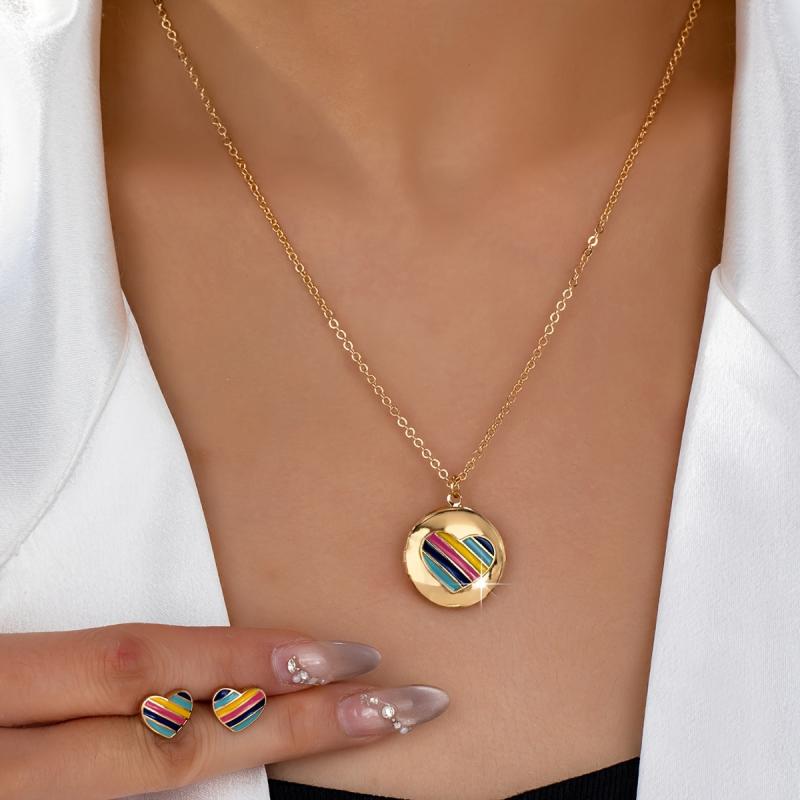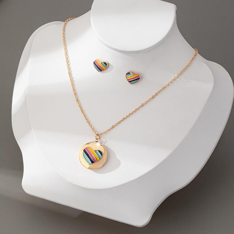 This heart pendant necklace set is the perfect accessory for daily wear or special occasions. It exudes charm and elegance, making it a great choice for adding a touch of love to your outfit.