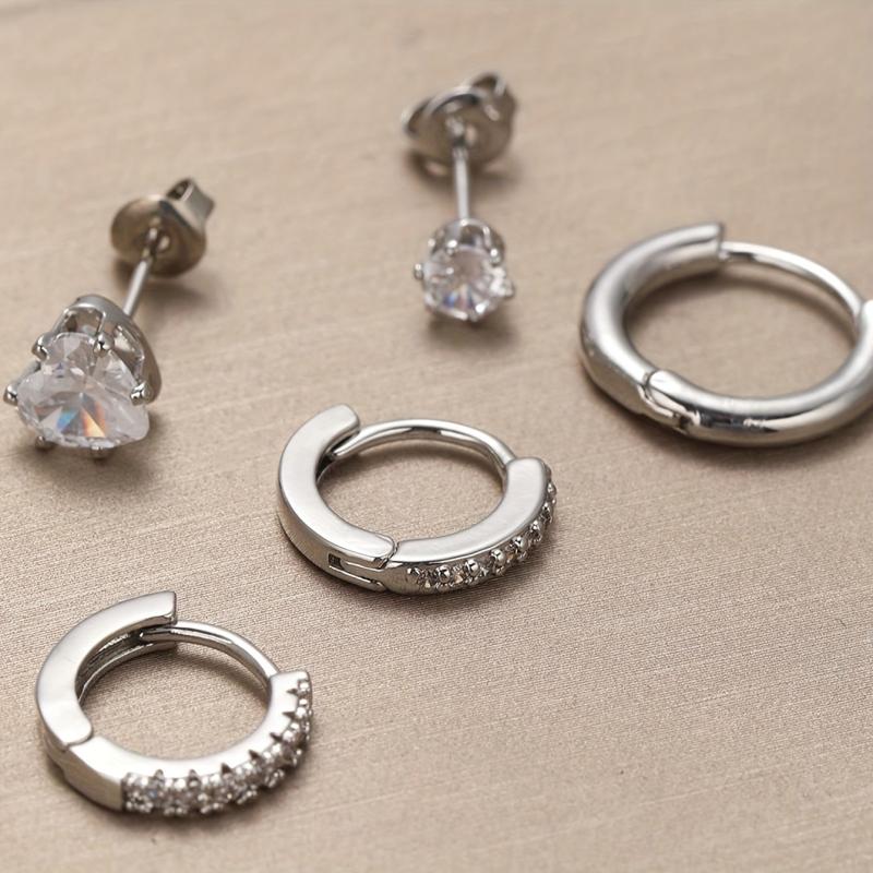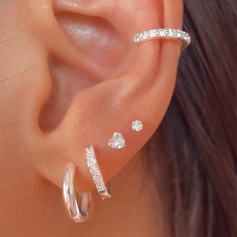 Stay stylish with this set of 5 retro heart-shaped zirconia copper earrings, perfect for vacations, dates, and daily wear. Great for Christmas, Halloween, and New Year's parties.