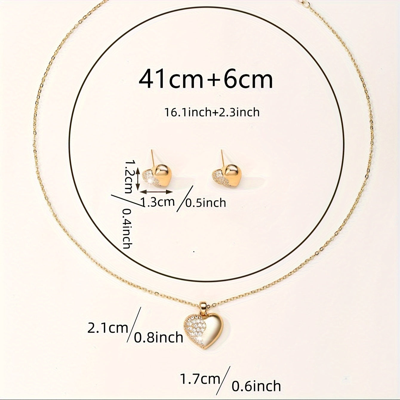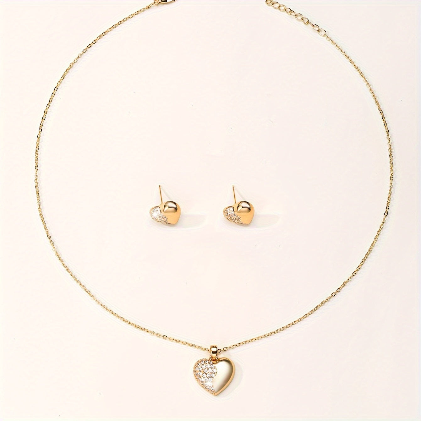 Add a touch of elegance to your daily outfits or party look with this stunning jewelry set. The set includes heart paved zirconia stud earrings and necklace, perfect for any occasion.