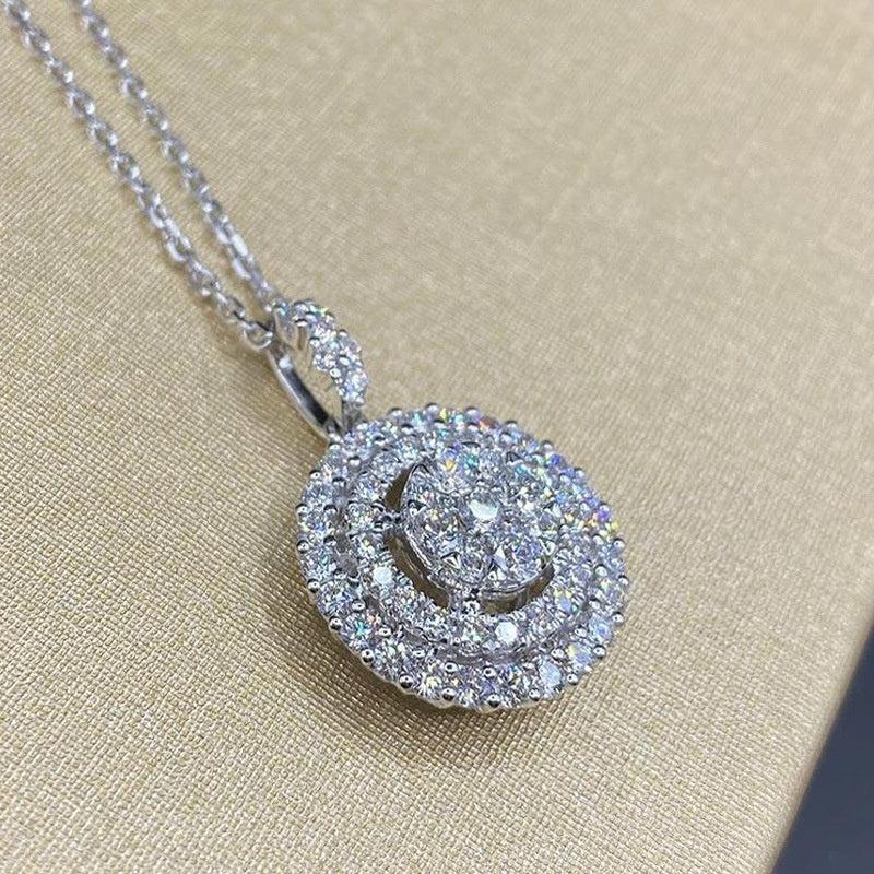 This stunning multilayer pendant necklace features a round synthetic zirconia set in sparkling copper. Perfect for bridal wear, weddings, or as a gift year-round.
