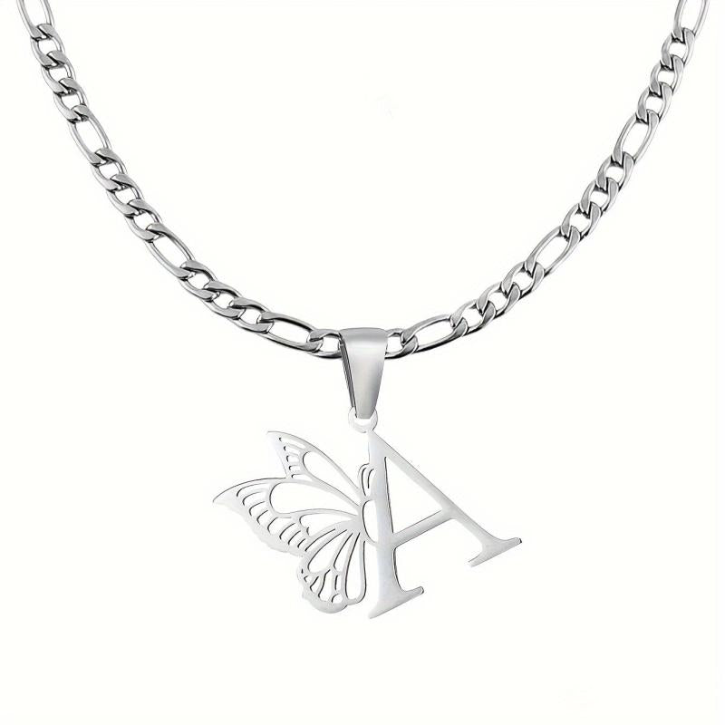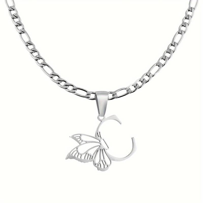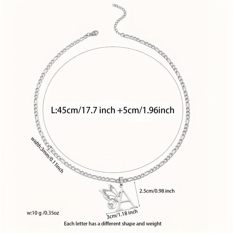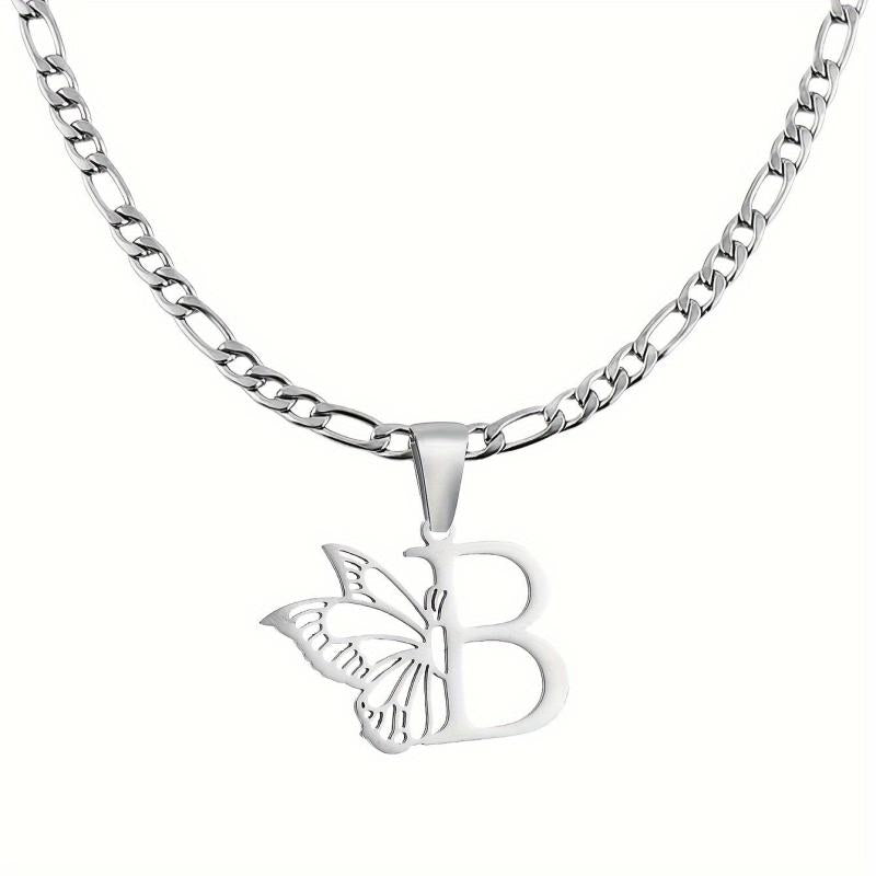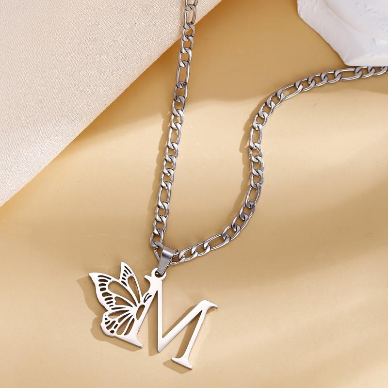 This stylish Initial Pendant Necklace is made of high-quality stainless steel, featuring script and numeric symbols with a butterfly necklace design. It's perfect for all seasons and a great Christmas gift for both men and women.
