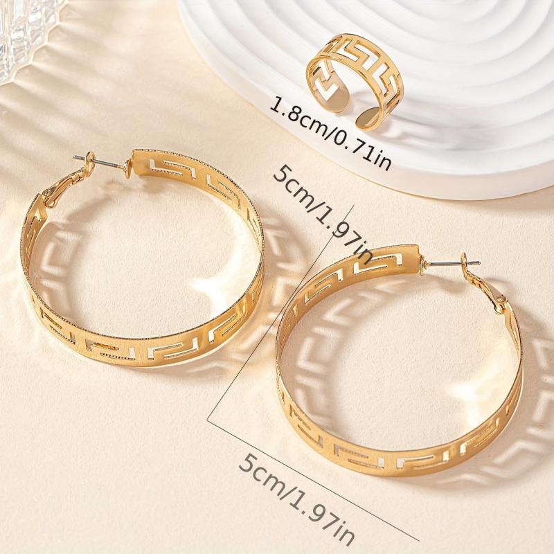 This set includes a pair of hoop earrings and a ring with hollow pattern. Perfect for summer days, add a touch of sexy style to your daily casual outfits.