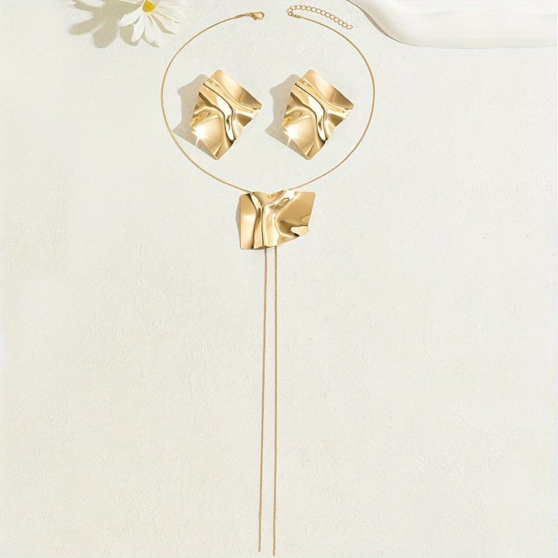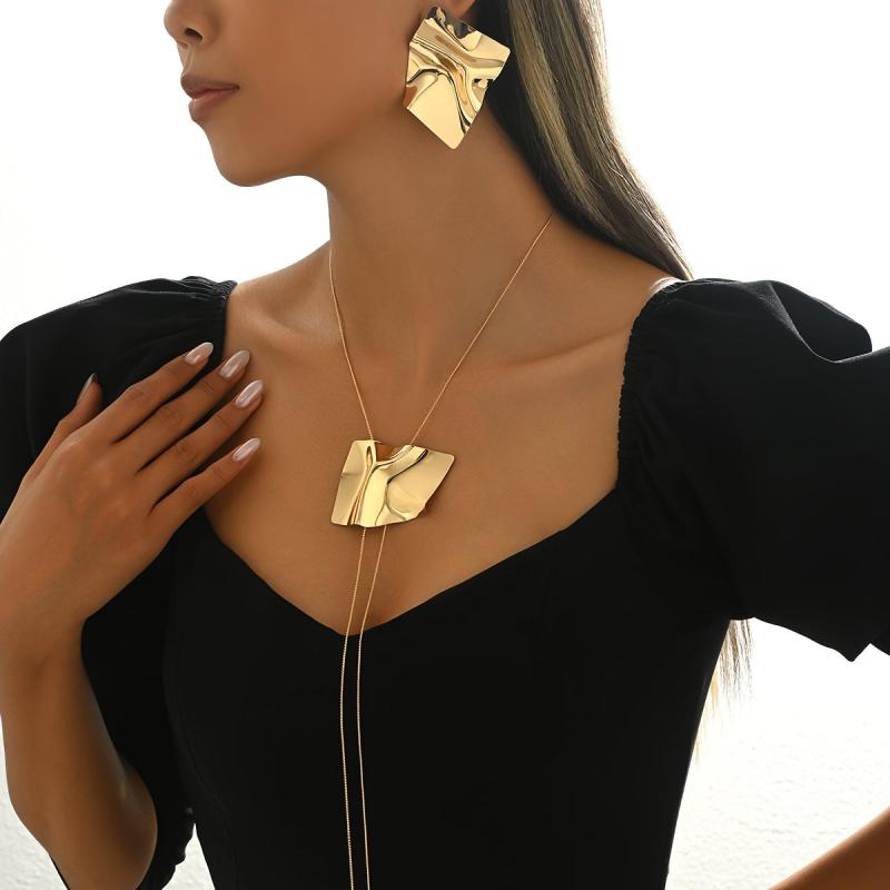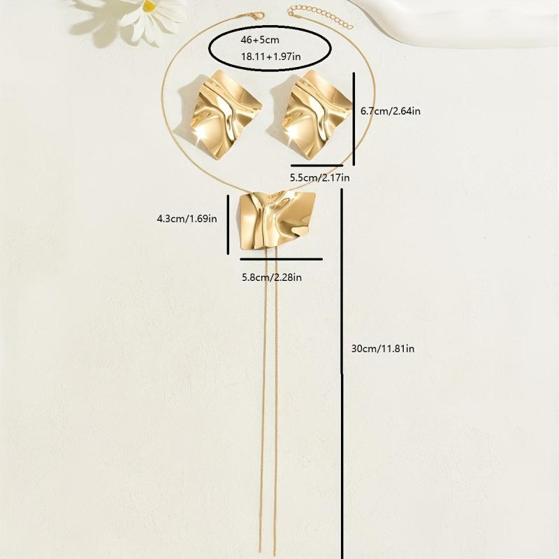 Complete your daily look with this stylish two-piece jewelry set featuring an irregular geometric metal pendant snake chain necklace and matching stud earrings. The minimalist design adds a touch of sophistication to any outfit.