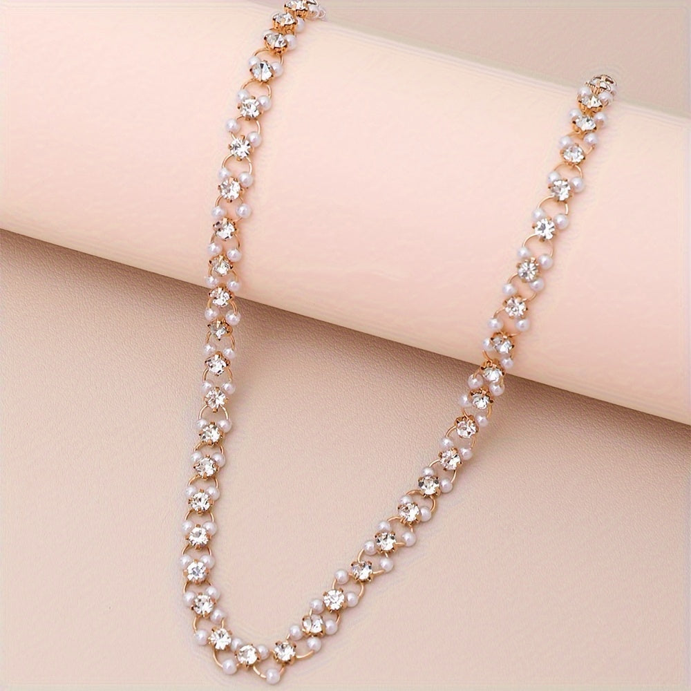 Elevate your look with this KC golden plated chain necklace adorned with sparkling rhinestones. Perfect for evening events or casual attire.