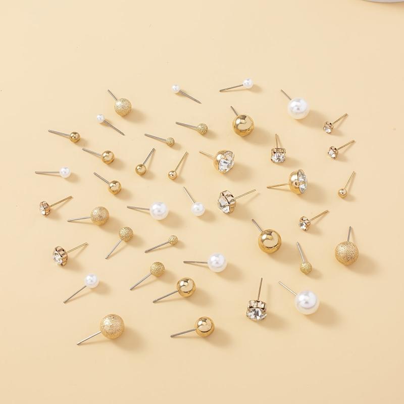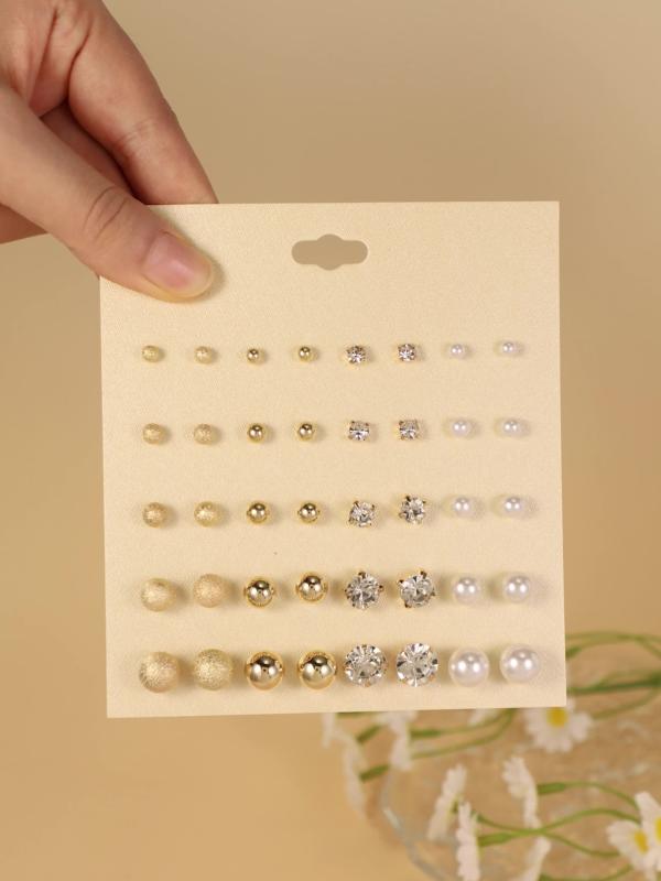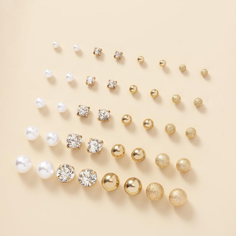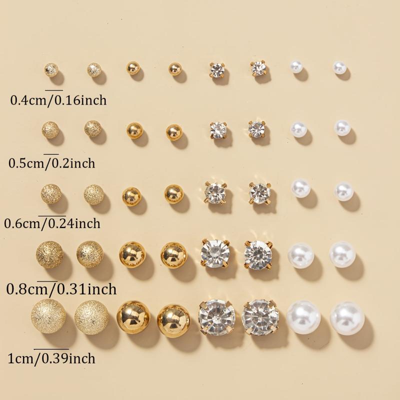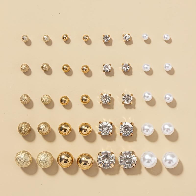 Adorn your ears with this set of 20 pairs of golden plated zinc alloy earrings featuring round rhinestone design. Perfect for daily wear or as a gift for special occasions.