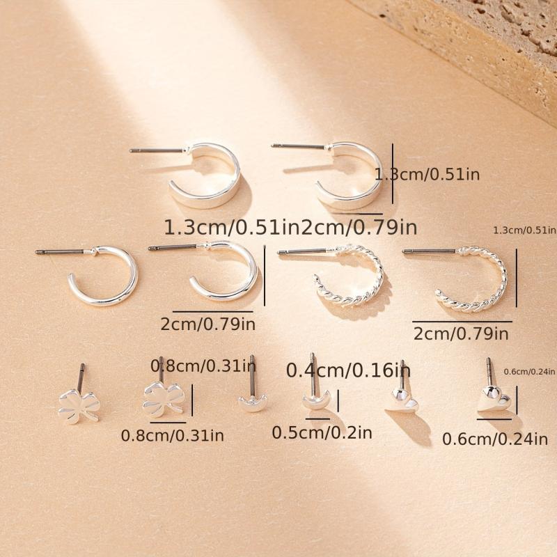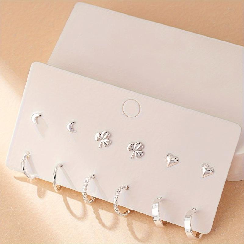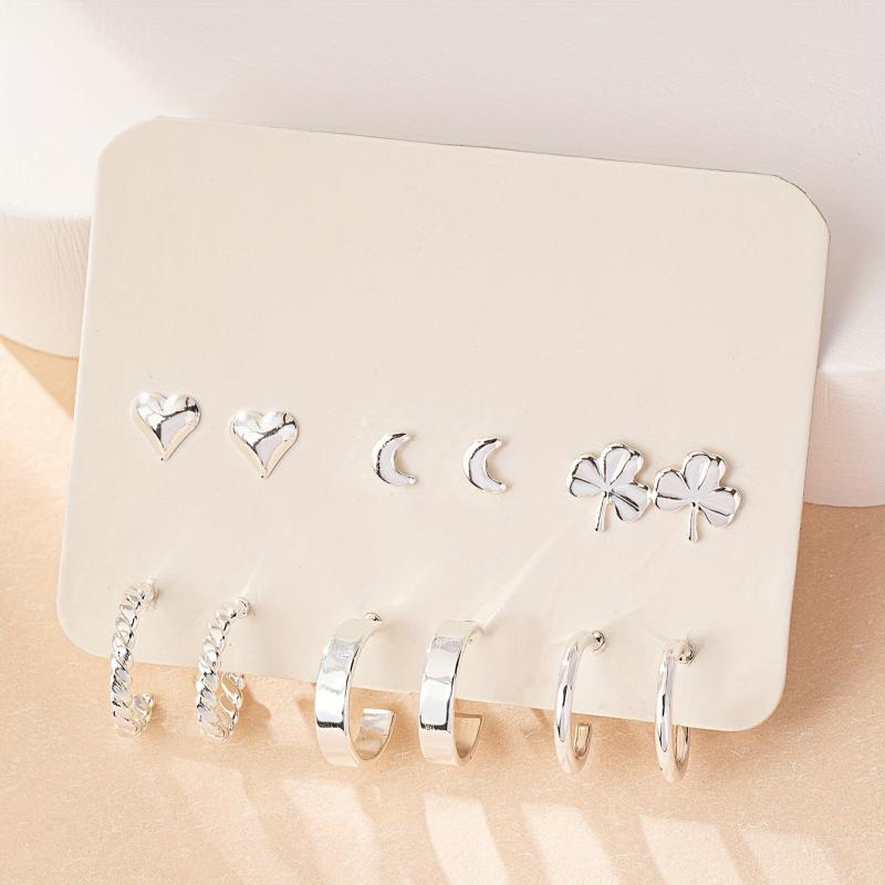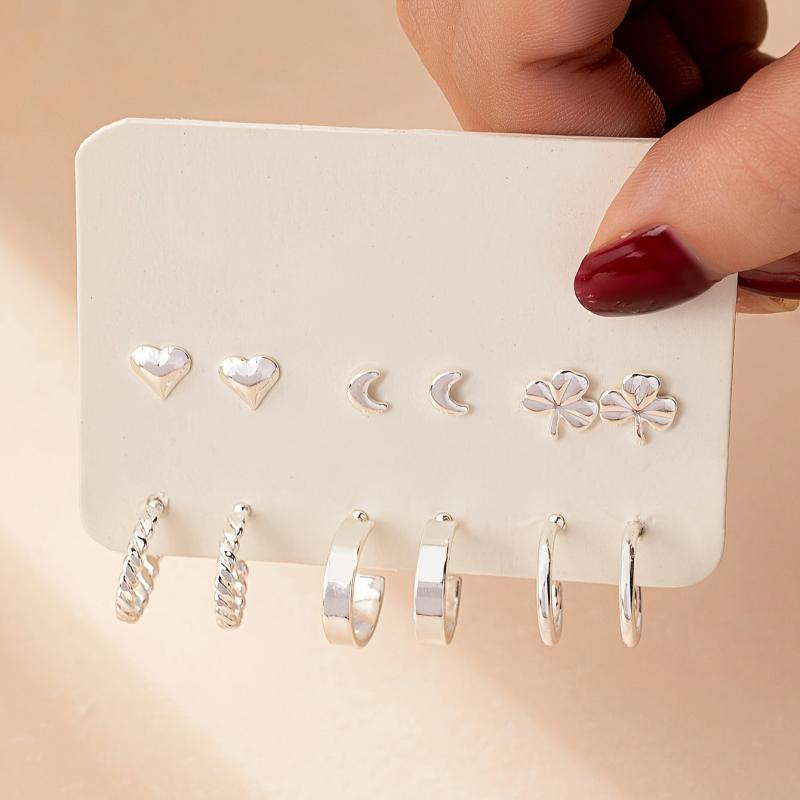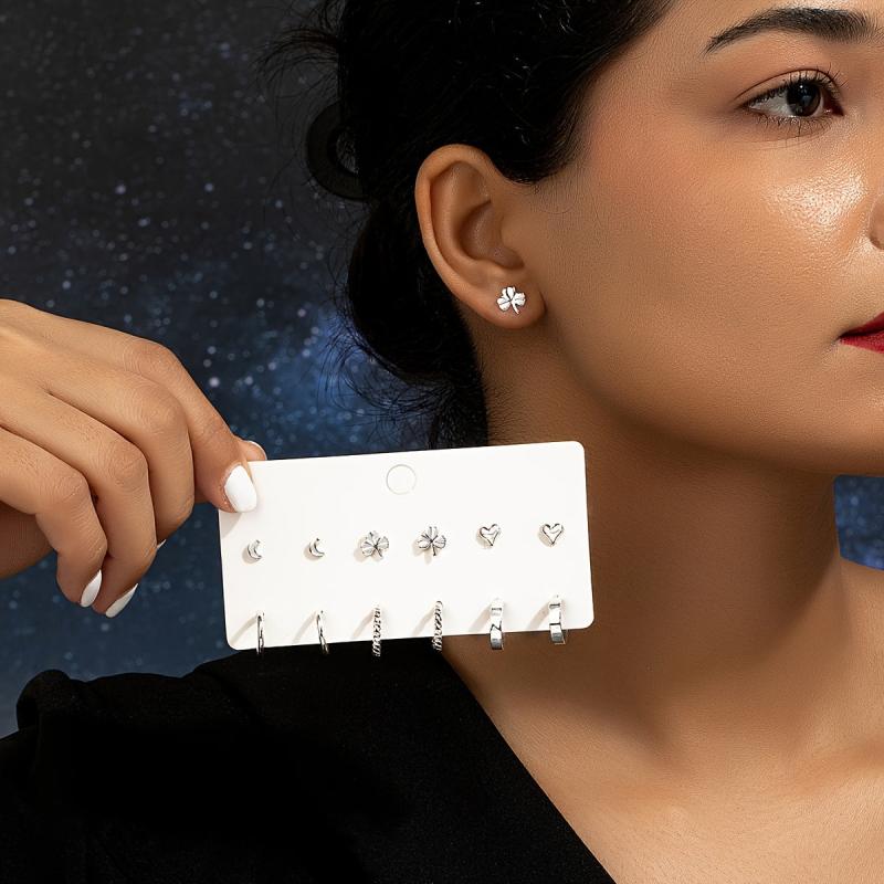 This earring set includes 6 pairs of small earrings featuring classic and fashionable designs. Perfect for daily wear or as a gift for women.