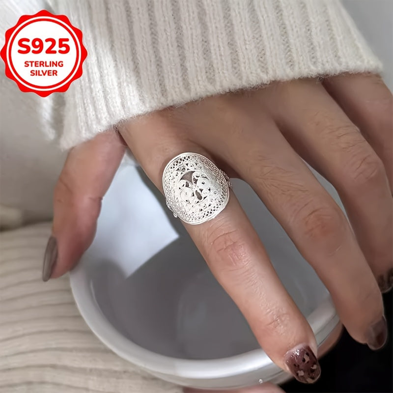 This stylish retro ring features a hollow flower design, perfect for adding a touch of elegance to any outfit. Made with low allergy materials, it is suitable for year-round wear. A great gift for any occasion!