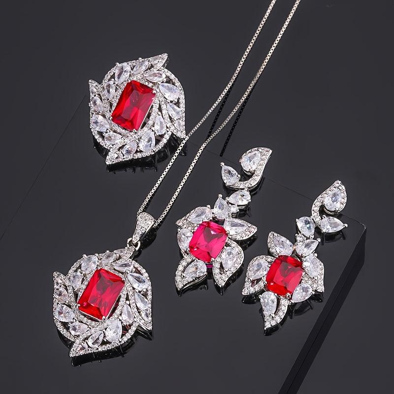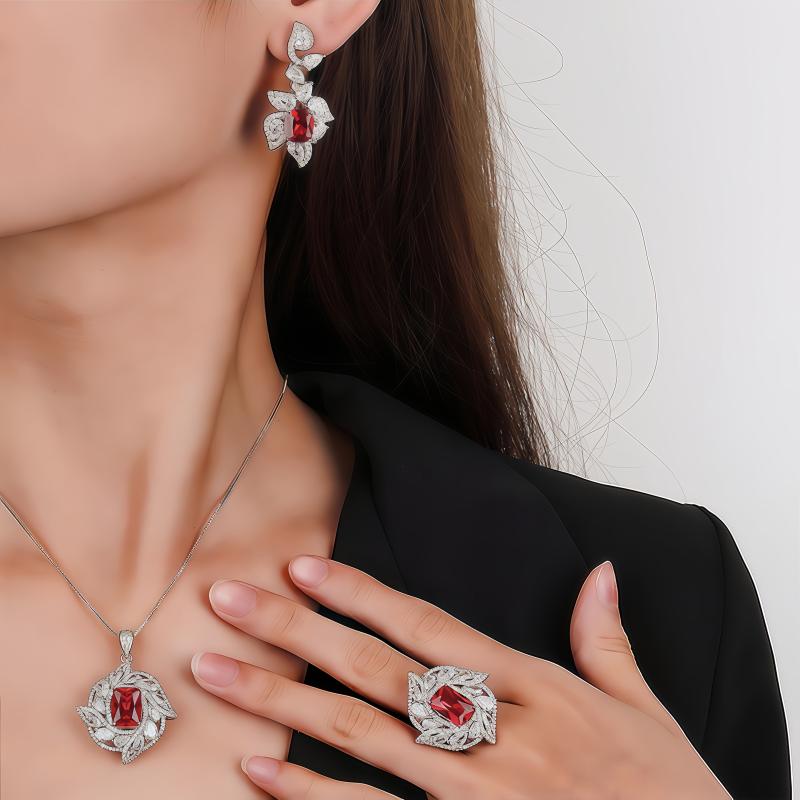 Beautiful set featuring maple leaf design with synthetic zirconia, bringing luck and happiness. Perfect Valentine's Day gift for loved ones.
