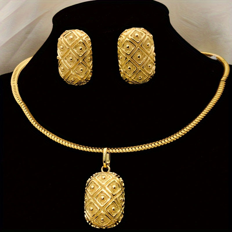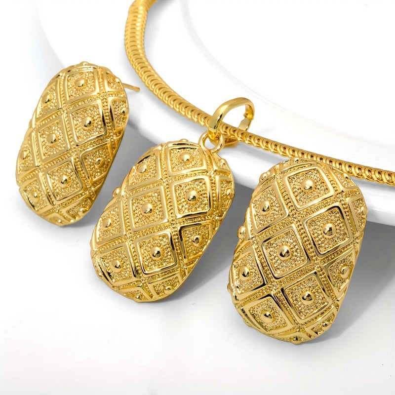 This 3pcs set includes a stylish copper necklace and earrings, perfect for couples, friends, or as a gift for wedding parties.
