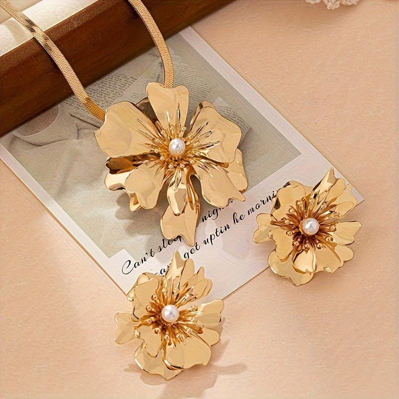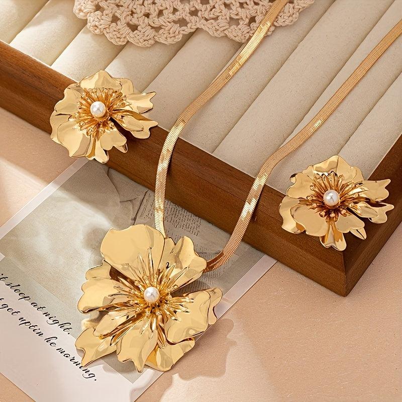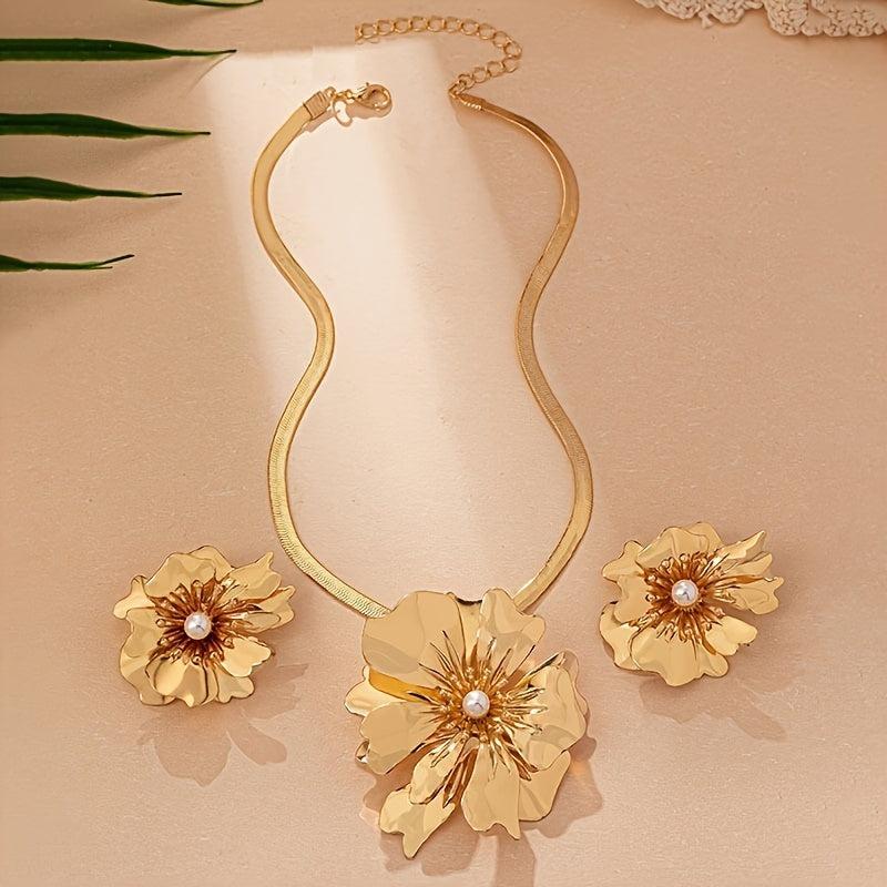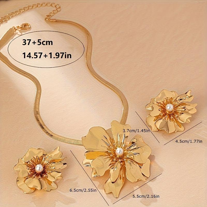 This stunning jewelry set is perfect for banquets and parties, featuring a metal flower snake chain necklace and earrings.