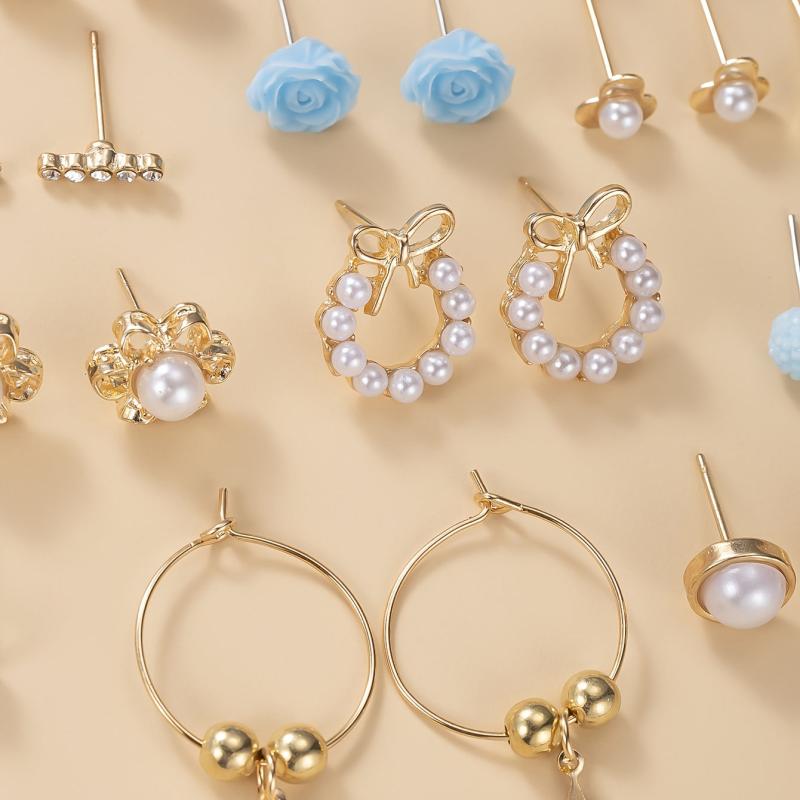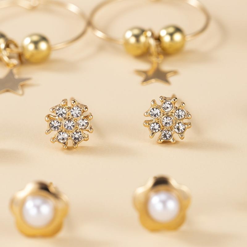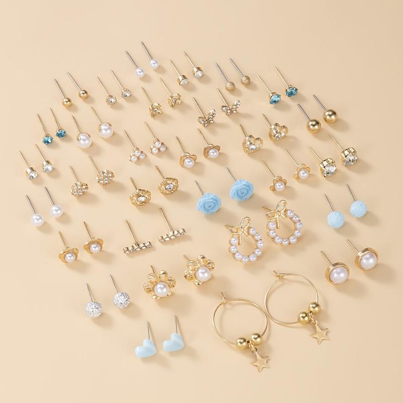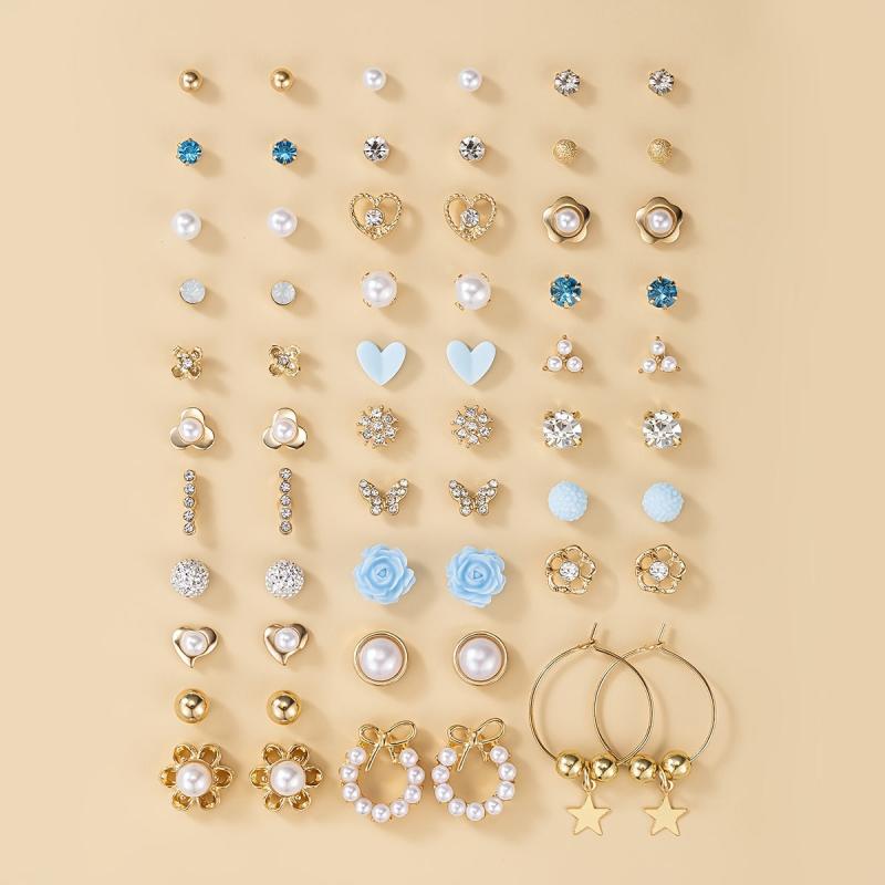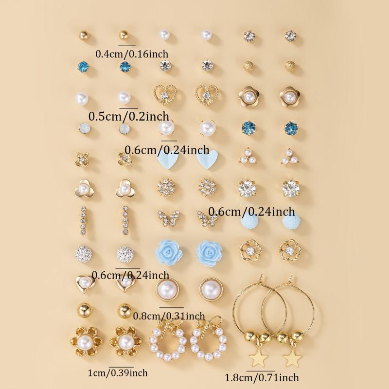 This set includes 30 pairs of earrings with rose, heart-shaped rhinestone, butterfly, and star designs. Perfect for daily wear.
