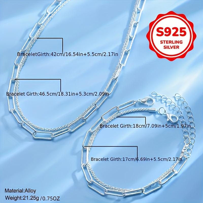 Elevate your look with this set of four necklaces and bracelets featuring sleek geometric designs. Perfect for everyday wear or a special occasion.