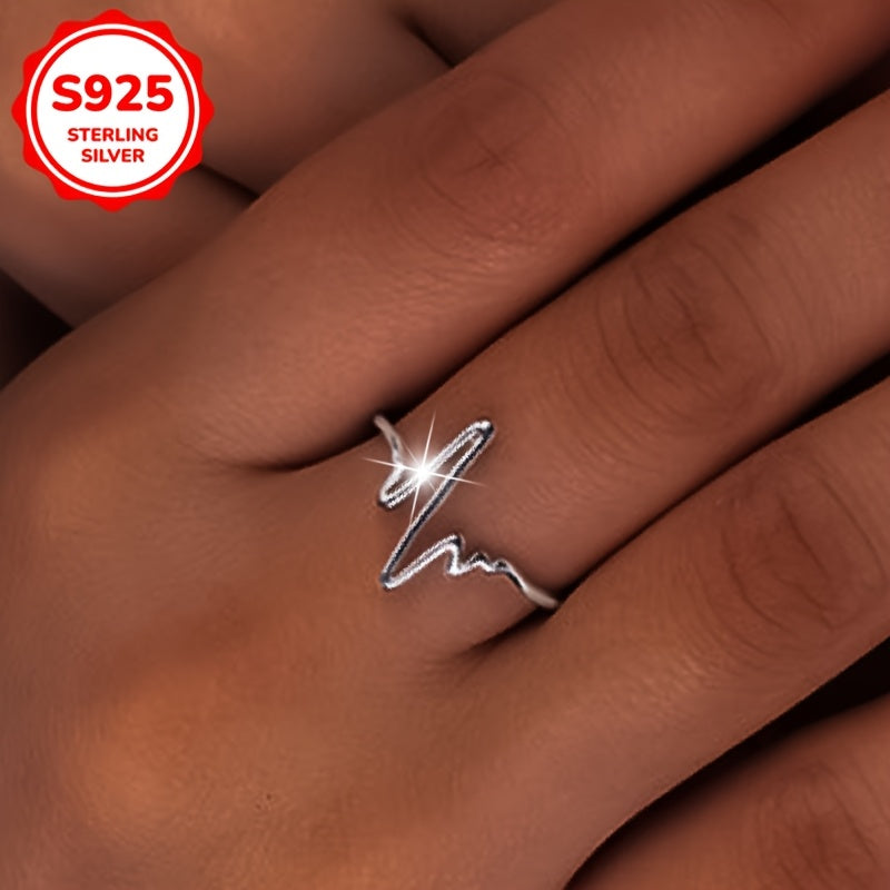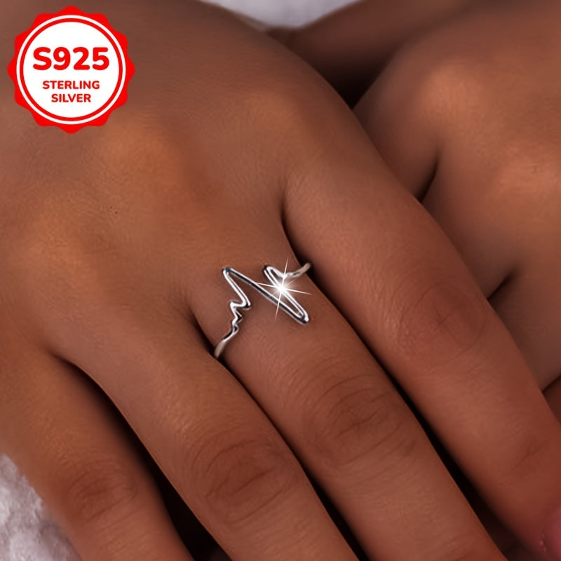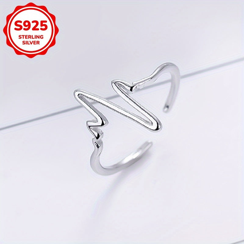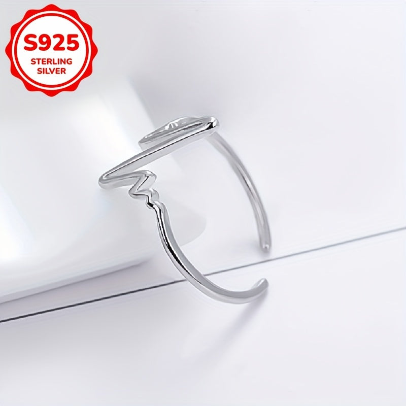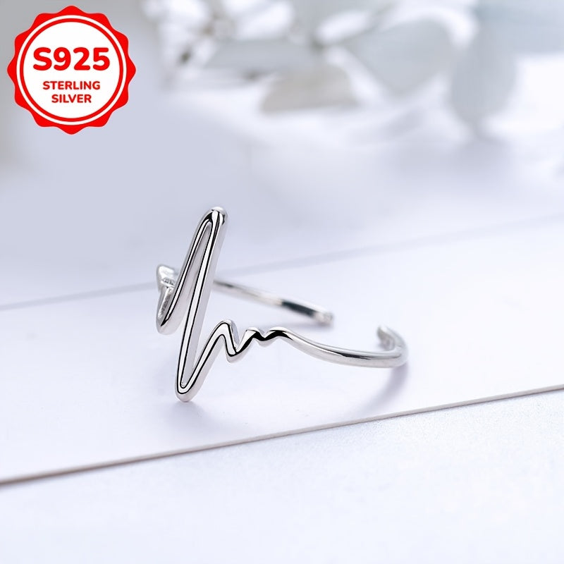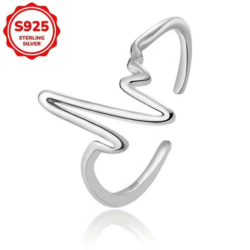 This sleek open ring is made of 925 sterling silver, weighing just 2g. Its minimalist design features a heartbeat line, perfect for daily wear, parties, dates, and vacation style.