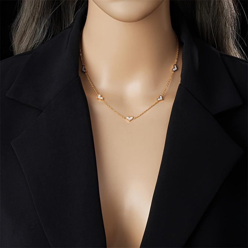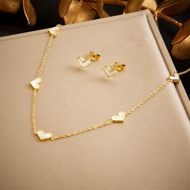 This elegant jewelry set includes a stainless steel necklace and earrings with heart-shaped pendant. Perfect gift for women.