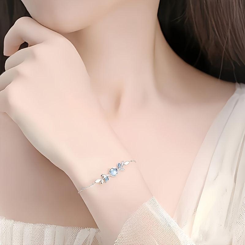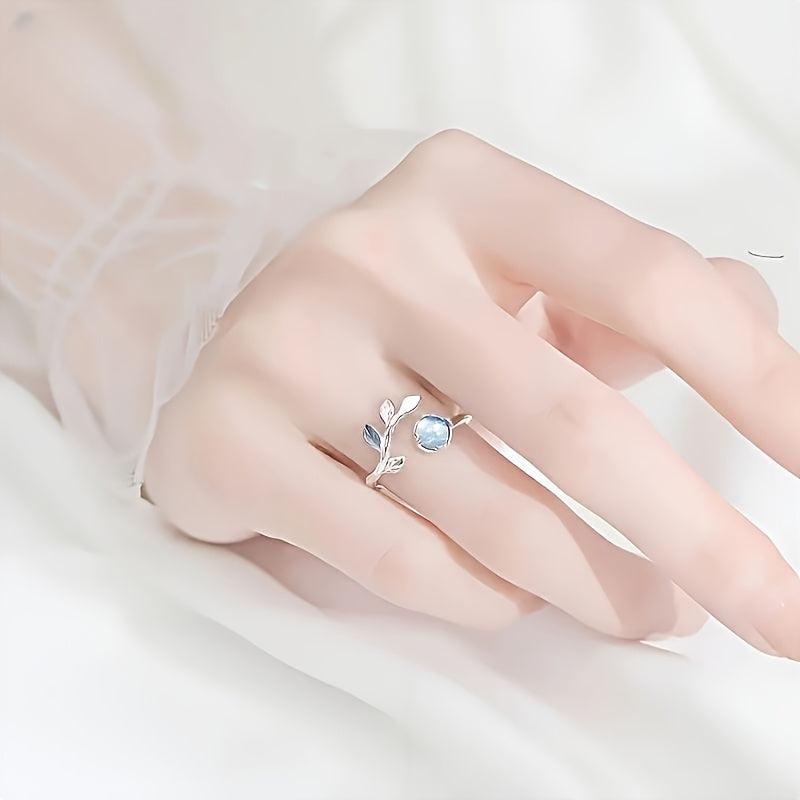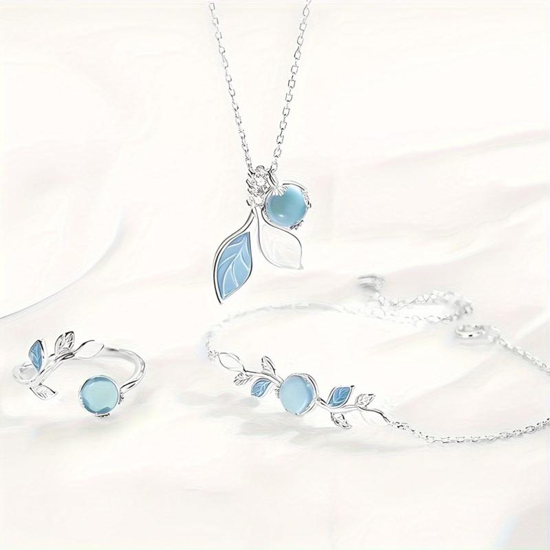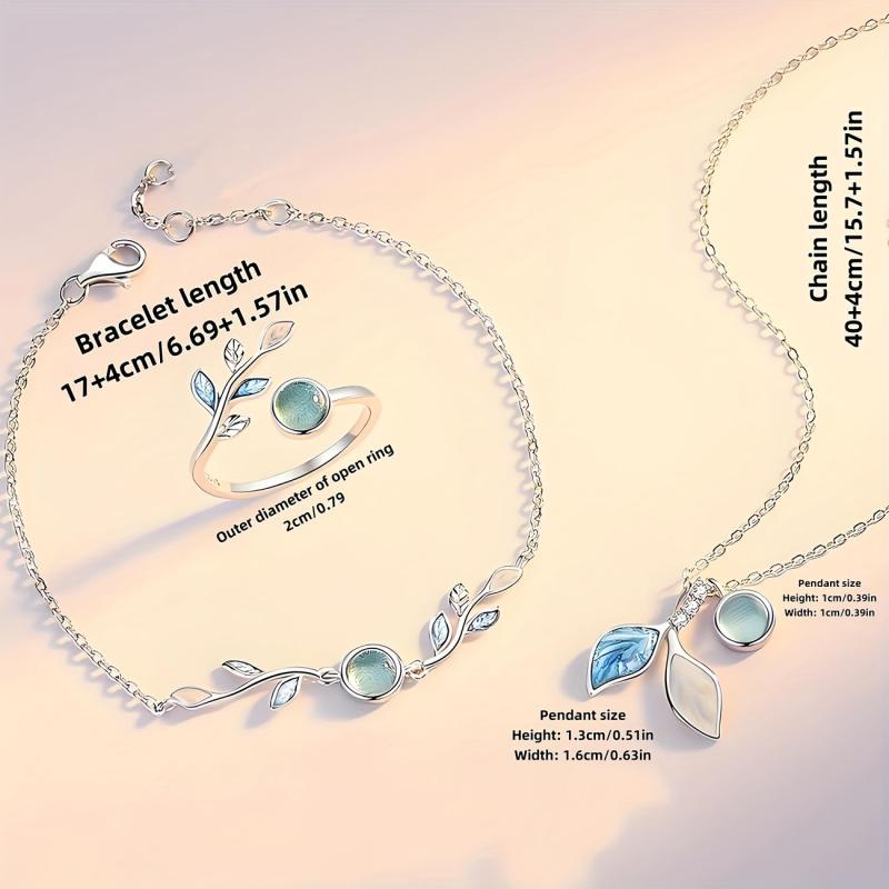 This fashionable jewelry set includes a moonstone leaf necklace, open ring, and a bracelet. Perfect for daily wear or festivals.