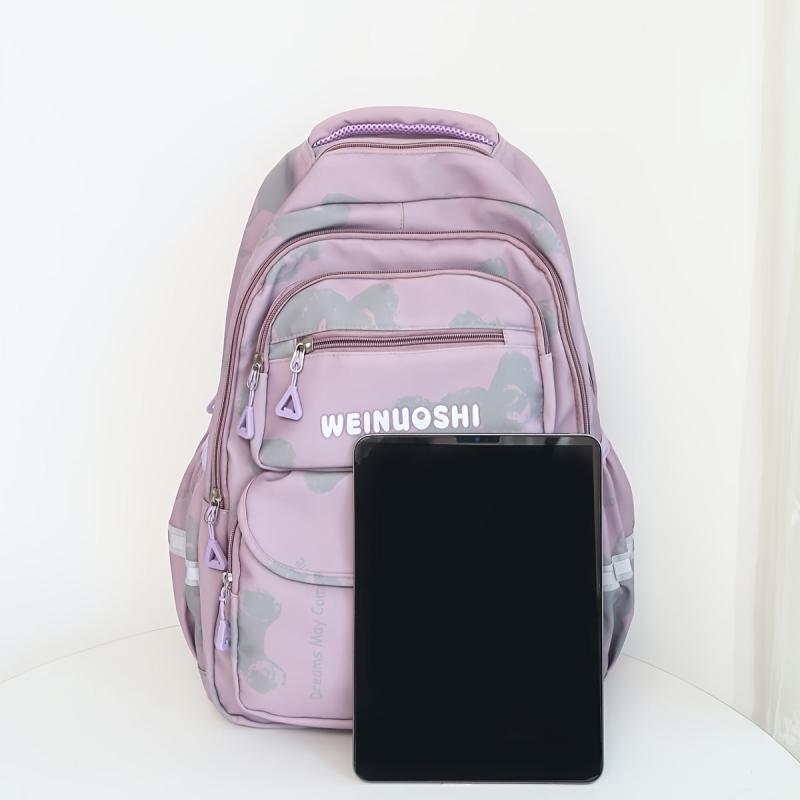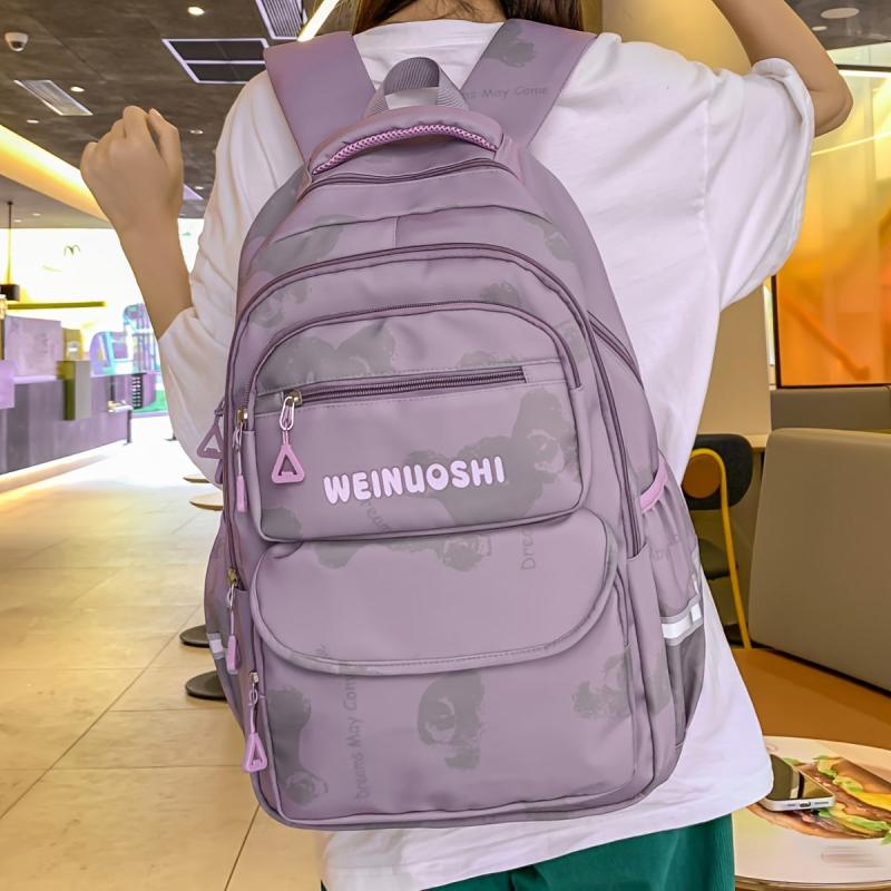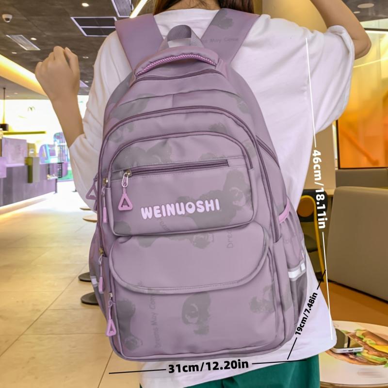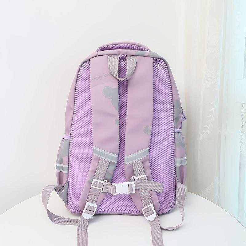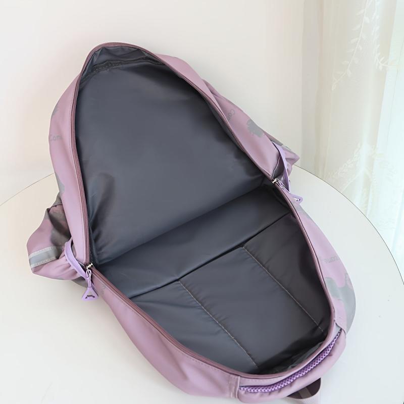 Stay stylish and organized with this durable backpack featuring a light purple color and floral pattern. Perfect for school or travel, it has a zip closure and polyester lining for added durability.