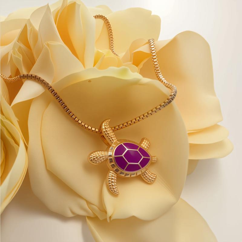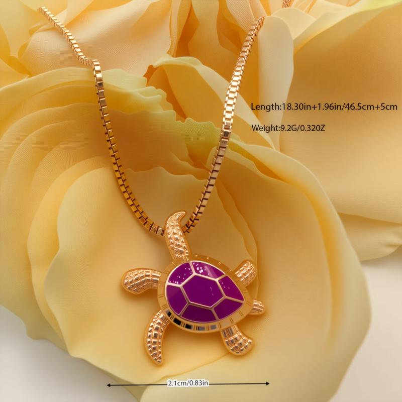 Elevate your beach vacation look with this stylish ocean turtle pendant necklace. The purple opal inlay and golden tone chain add a touch of elegance to your casual attire. It makes a perfect travel gift.