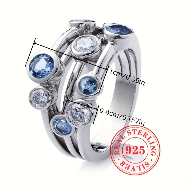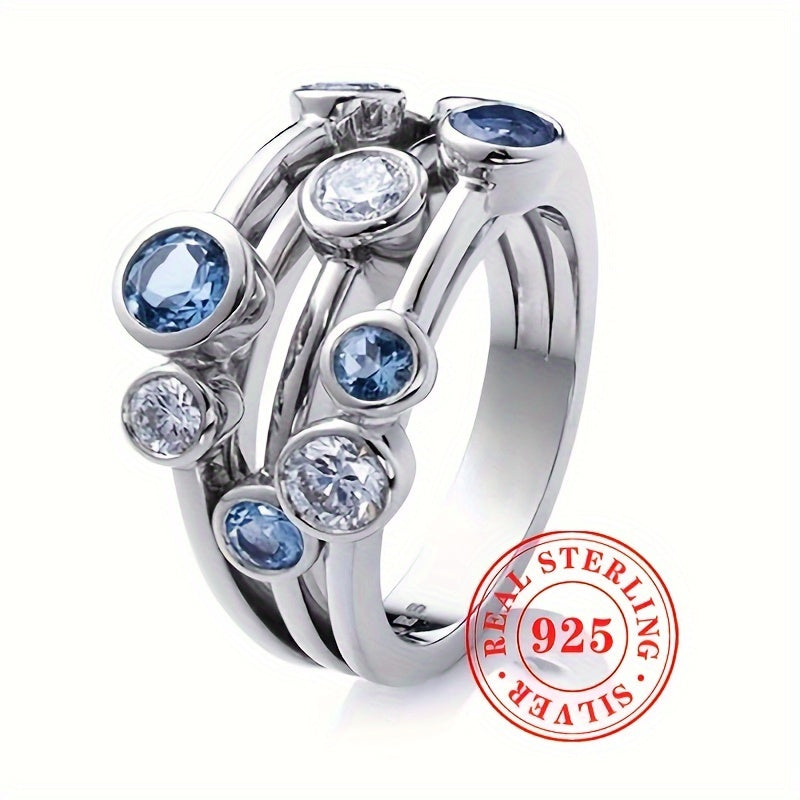 This Ocean Zirconia Ring is made of S925 Sterling Silver with synthetic zirconia stones. It is perfect for daily wear or special occasions.