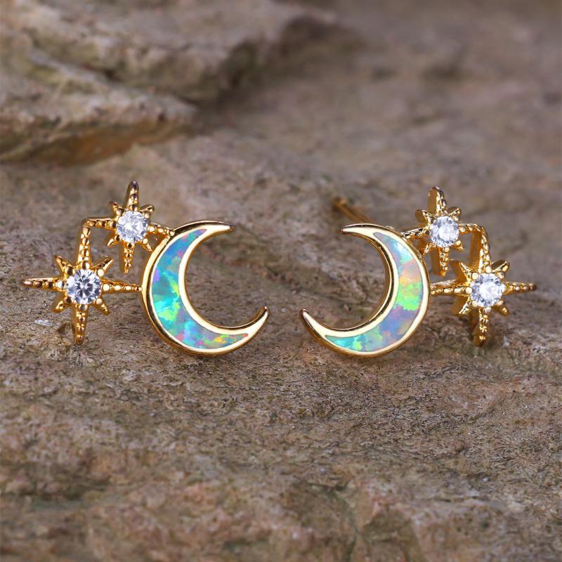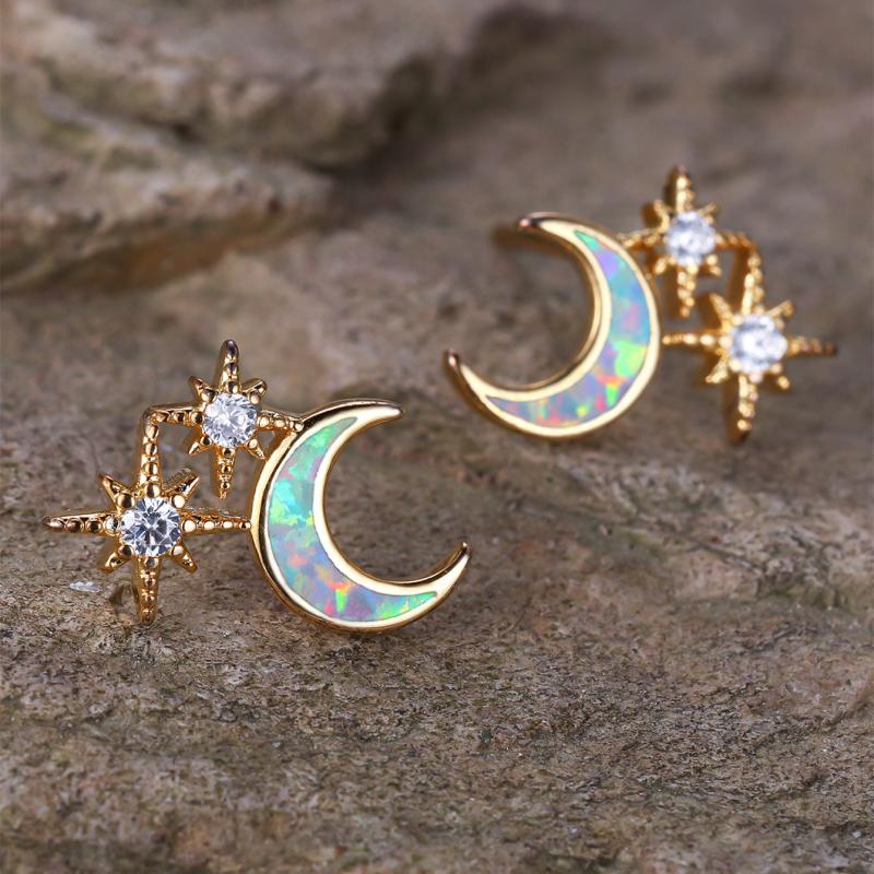 Add a touch of leisure style to your outfit with these copper stud earrings featuring opal embellishments. A perfect gift for women.