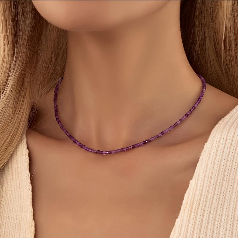 This elegant necklace features purple amethyst faceted natural stones, perfect for adding a touch of bohemian style to your casual attire. It is also a great gift option for loved ones. The minimalist design makes it versatile for various occasions.