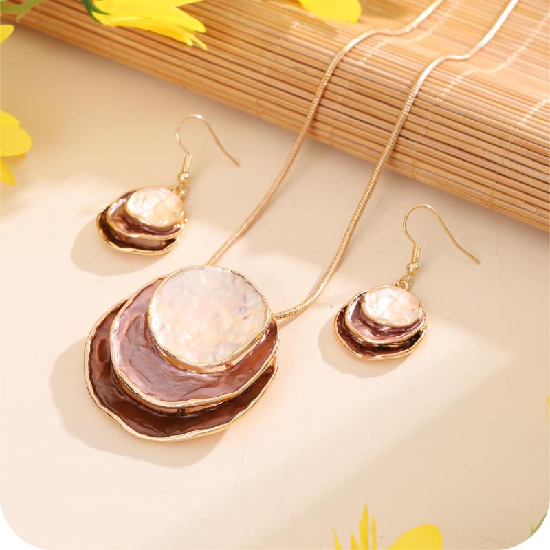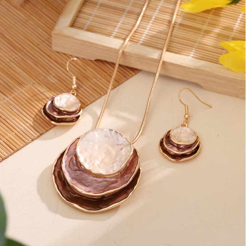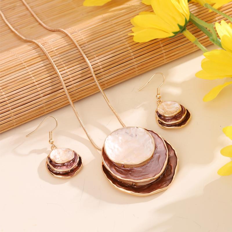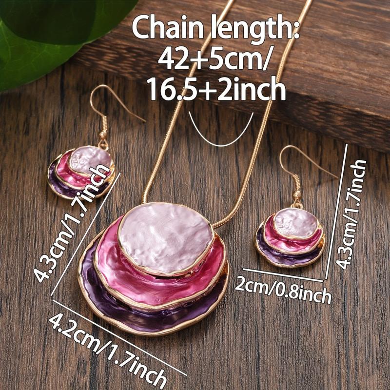 Elevate your style with this fashionable retro set featuring a colorful dripping thin coating enamel design. Made from zinc alloy, this set includes a necklace and a pair of earrings, adorned with three-layer circular decorative jewels.