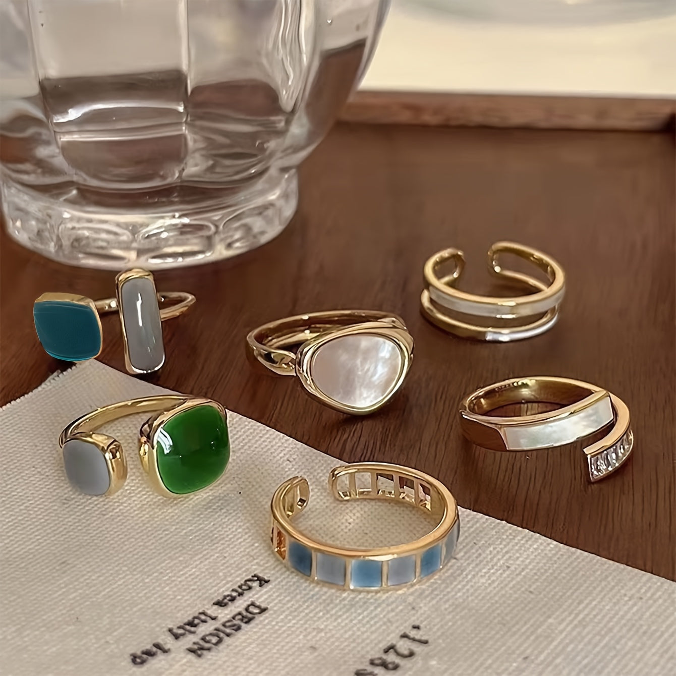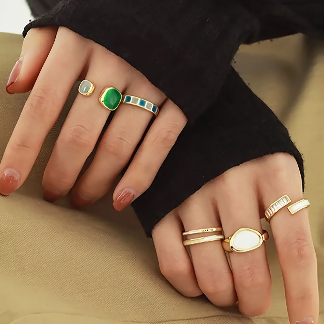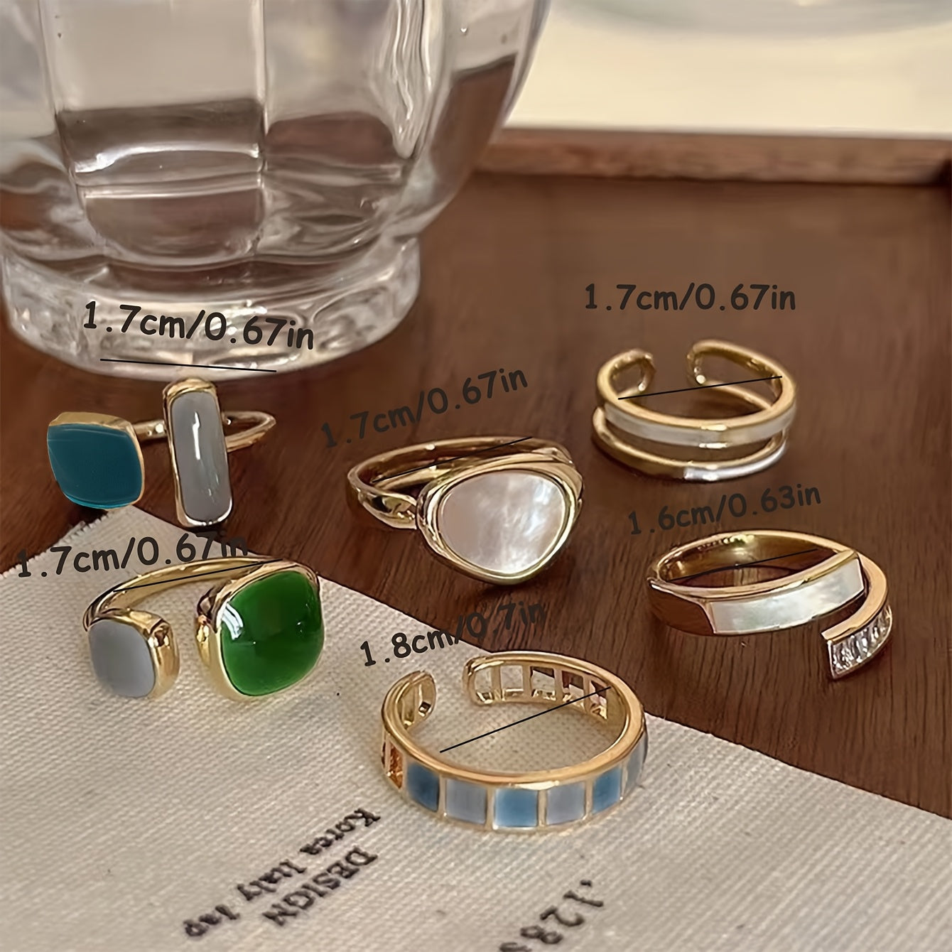 This set includes 6 retro geometric arc surface finger rings that are perfect for vacation, parties, dates, and daily wear. The rings are dripping with style and feature an exaggerated opening for a smooth look.