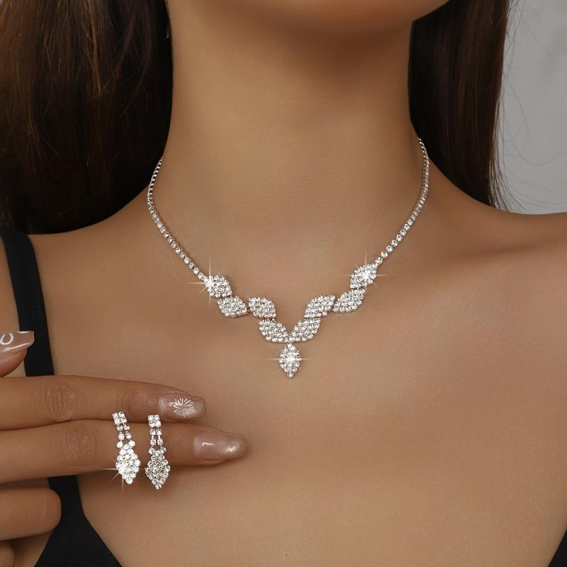 Elegant party jewelry set with sparkling rhinestone accents. Perfect for adding a touch of glamour to any outfit.