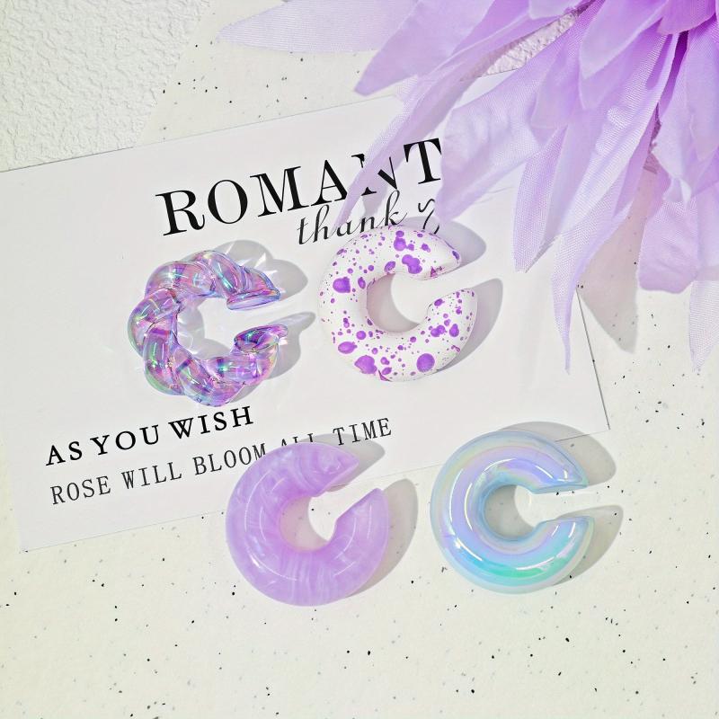 These romantic thank you earrings are perfect for daily wear and parties. No piercing needed - just clip them on! The set includes 4 chunky candy acrylic resin earrings.