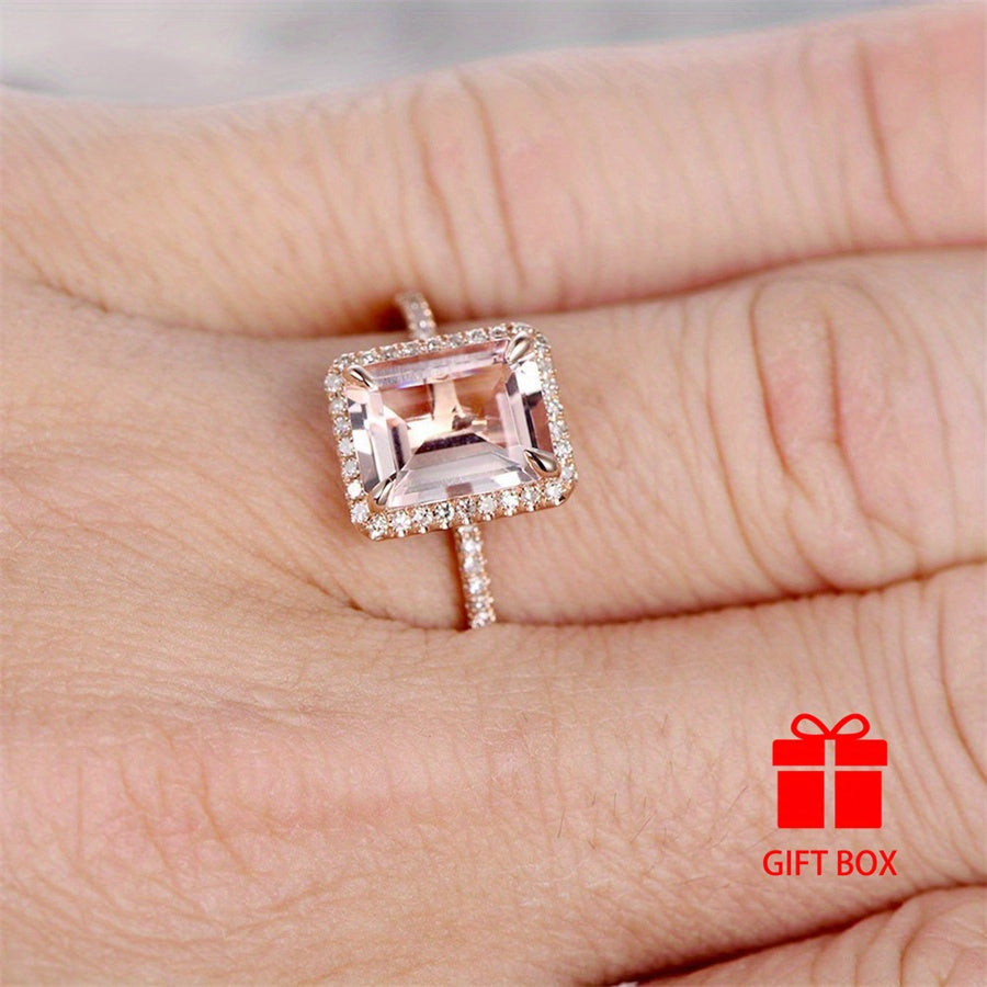 Elegant rose gold plated copper ring with square cut synthetic zirconia, perfect for daily wear and gifting throughout the year.