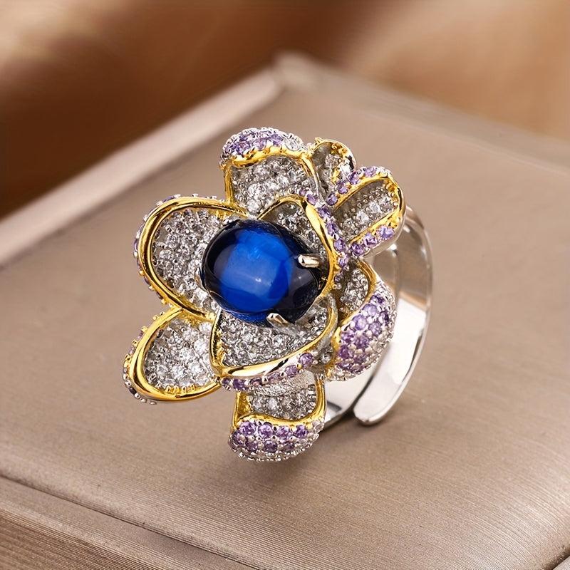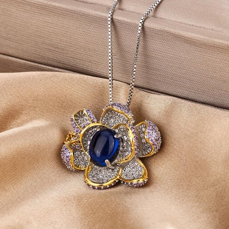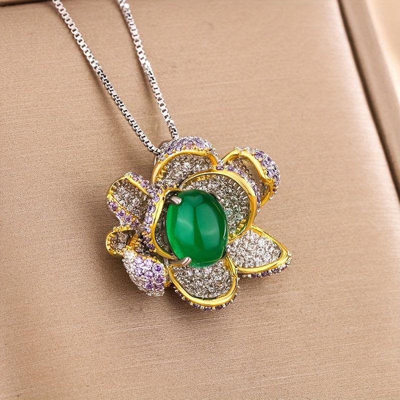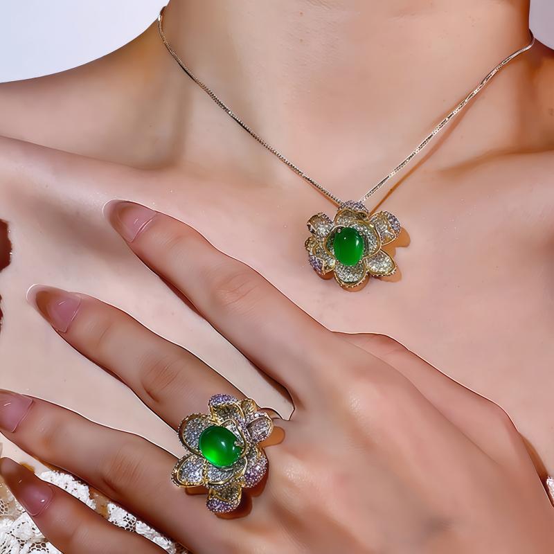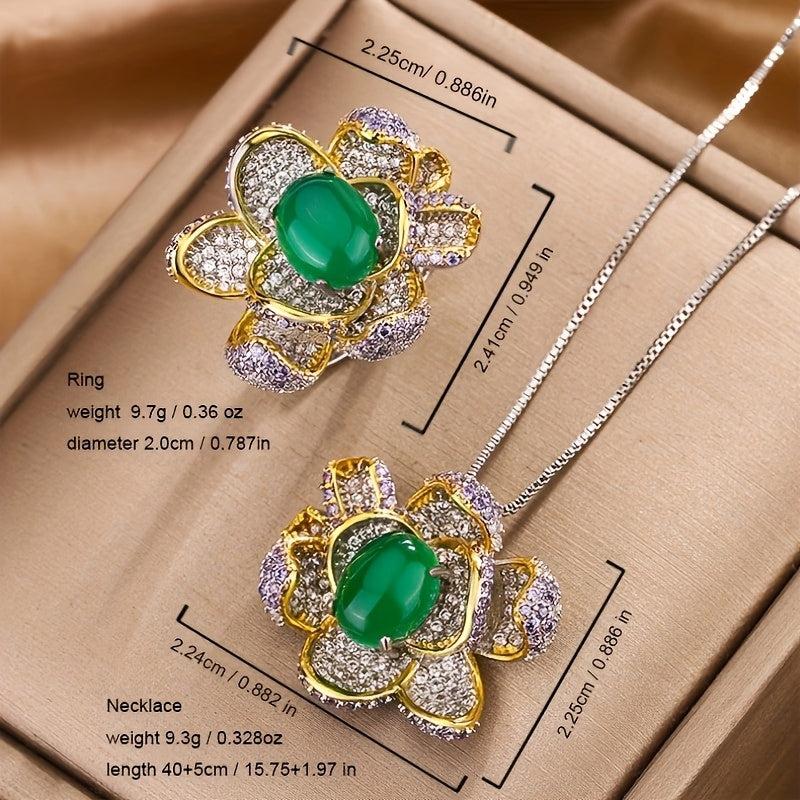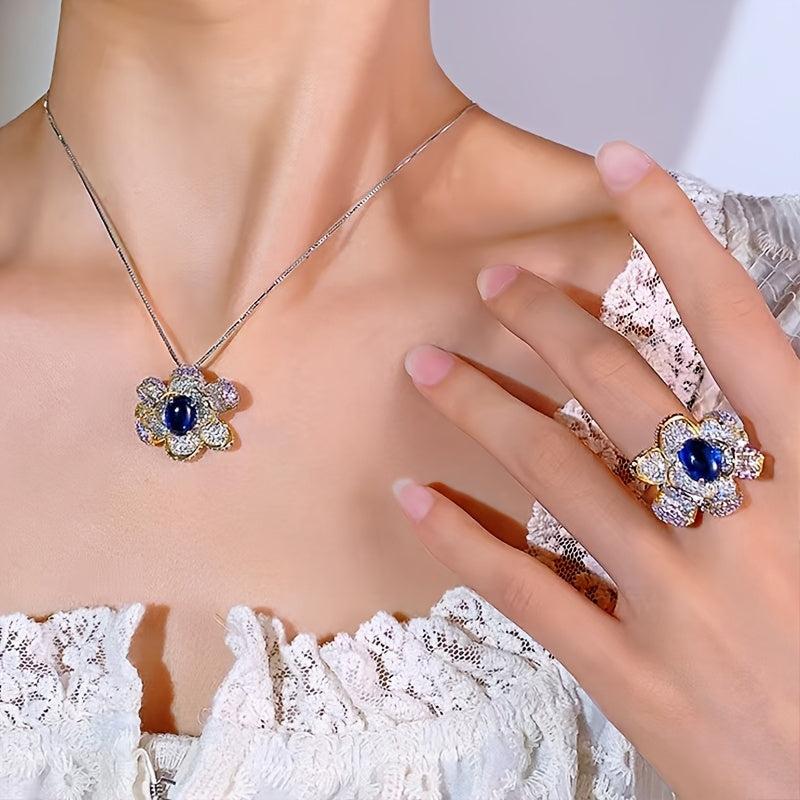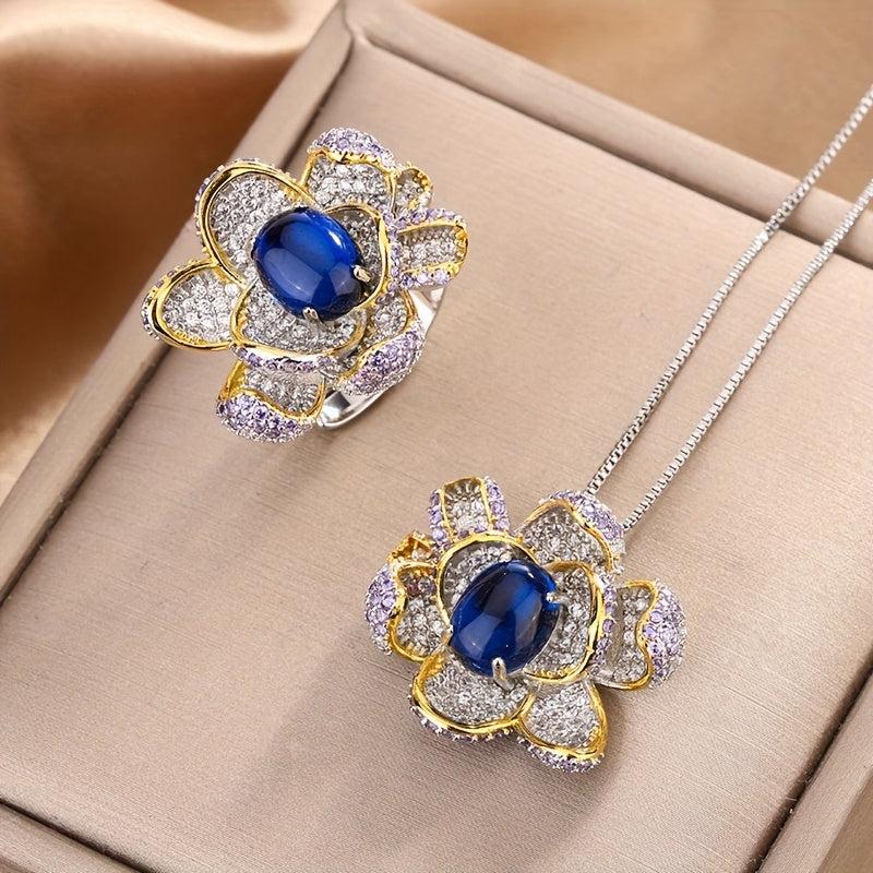 Beautiful rose pendant necklace and adjustable ring set with synthetic zirconia, perfect for Mother's Day, Valentine's, weddings, and banquets.