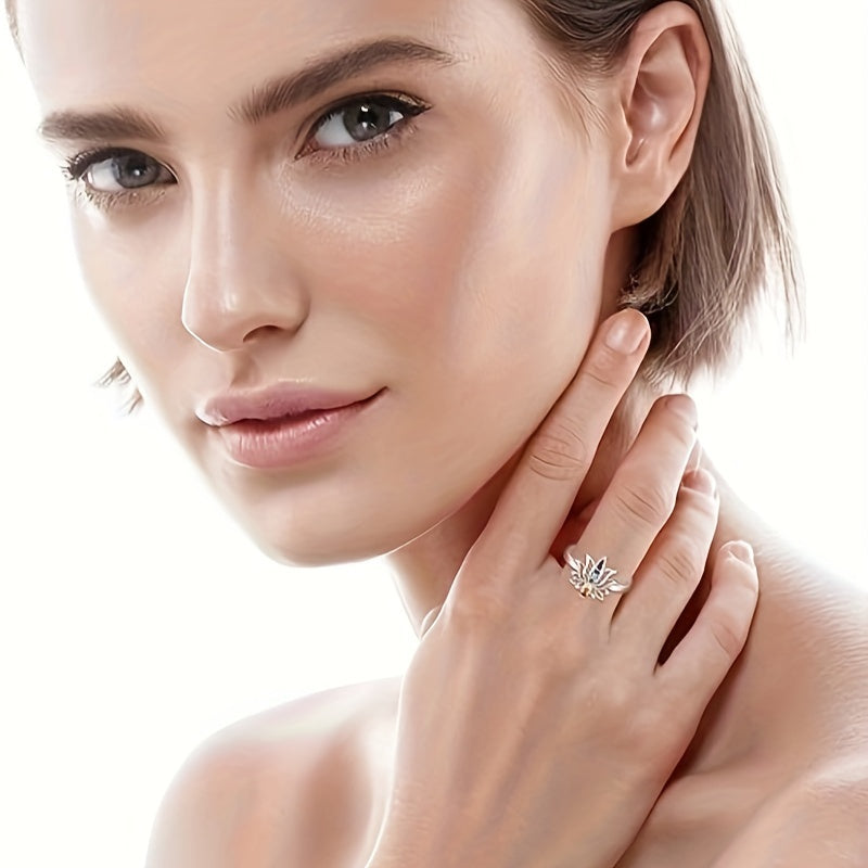 This elegant ring is the perfect jewelry gift made with pure silvery synthesis synthetic zirconia.